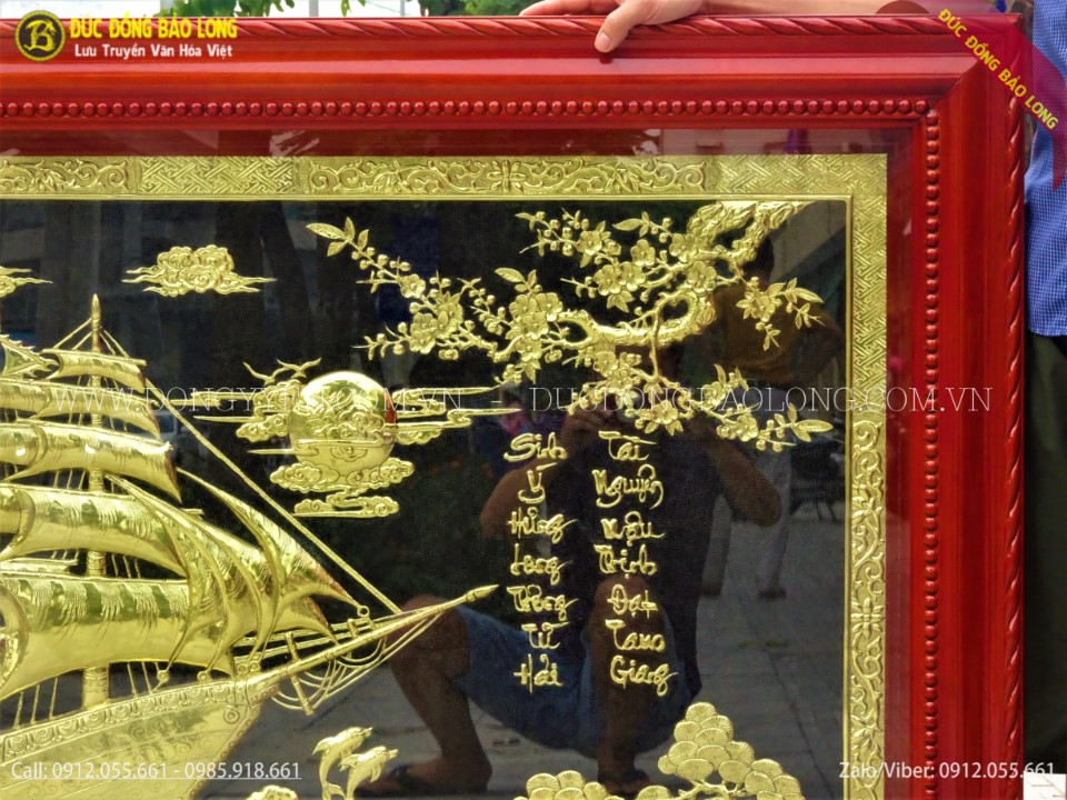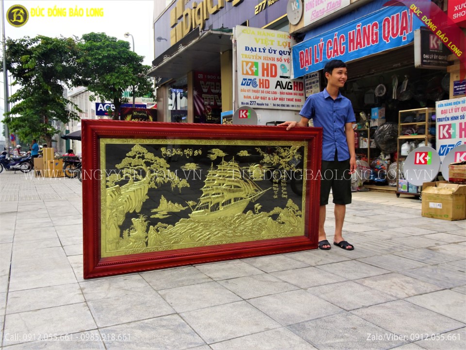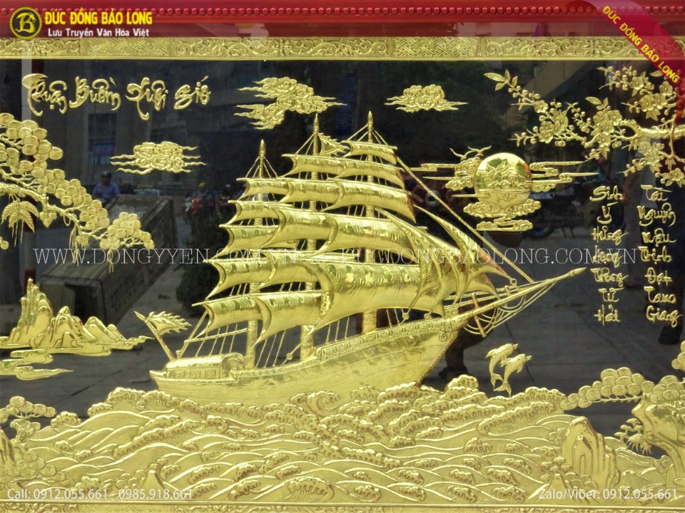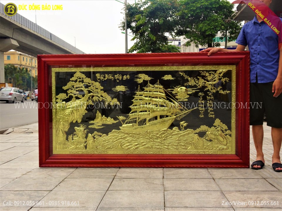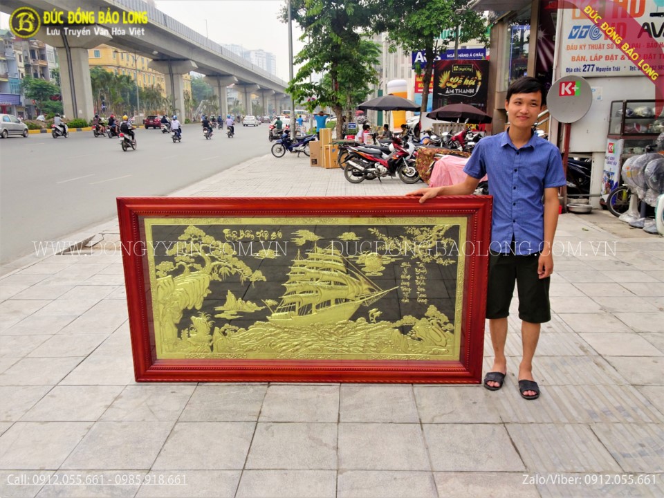 Tranh thuận buồm xuôi gió bằng đồng khung gỗ gụ 1m55x88cm là một trong những bức tranh khá phổ biến được cơ sở Bảo Long chế tác đưa ra thị trường và đang được rất nhiều khách hàng yêu thích sử dụng.