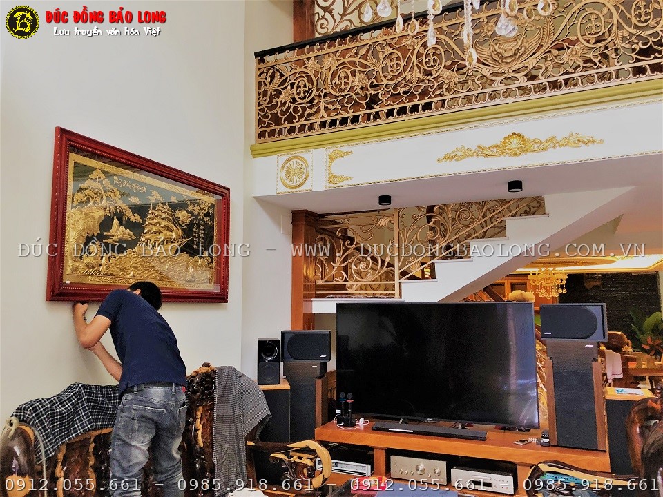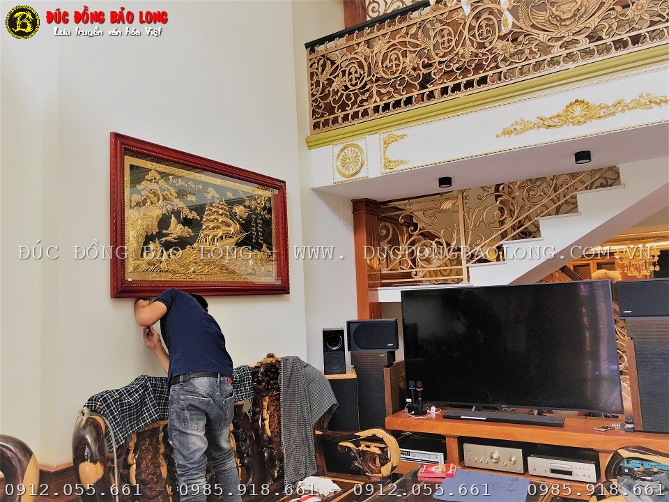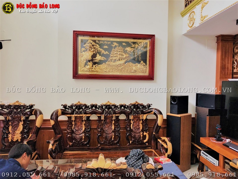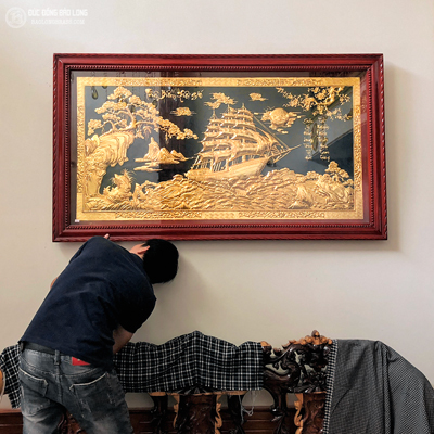 Tranh thuận buồm xuôi gió bằng đồng mạ vàng 24k cho khách hàng tại Sài Gòn