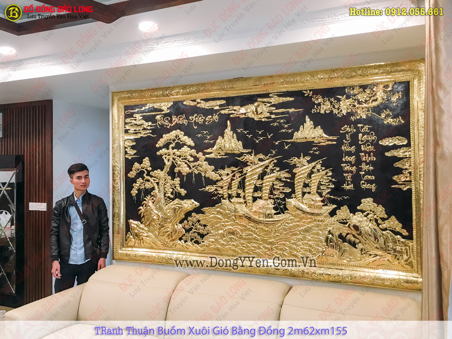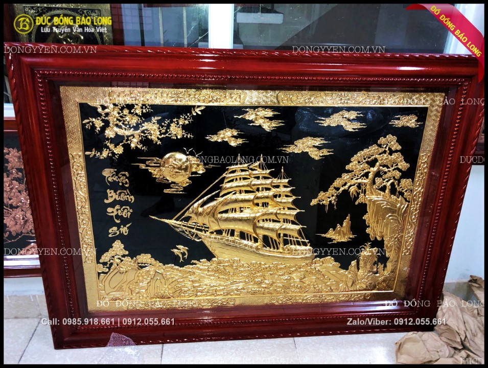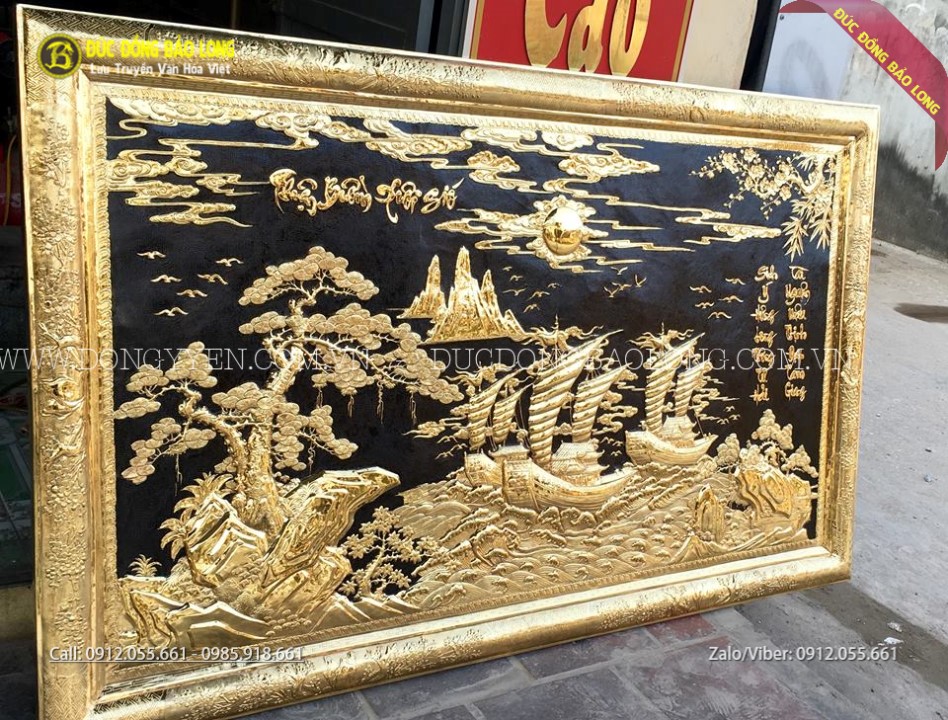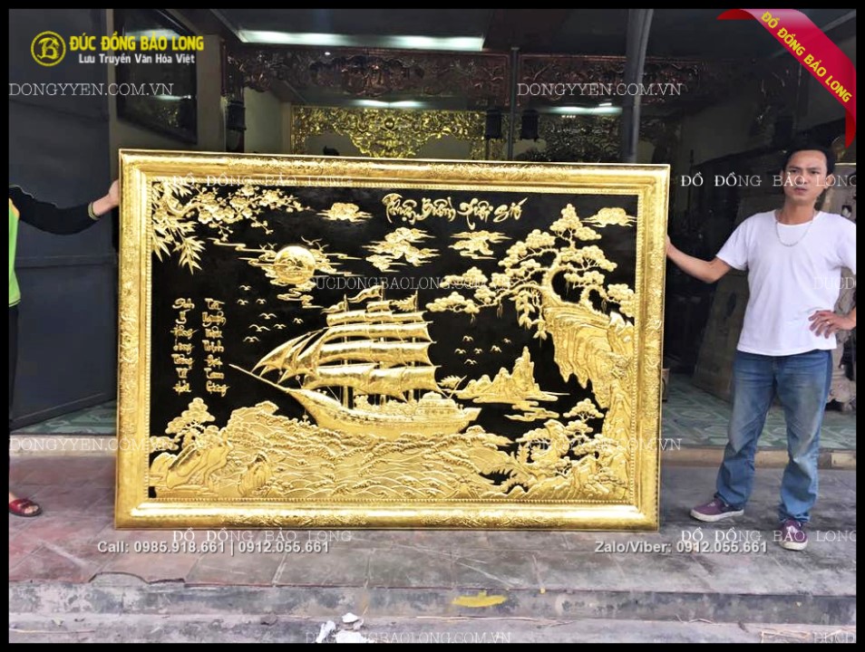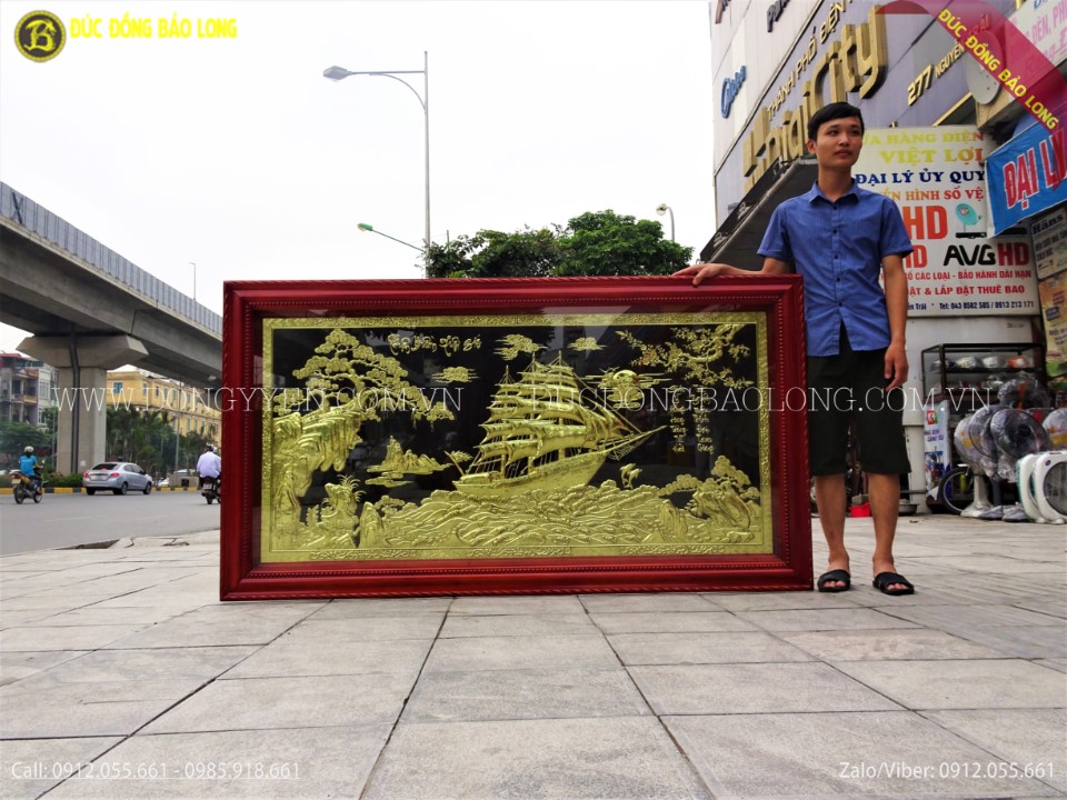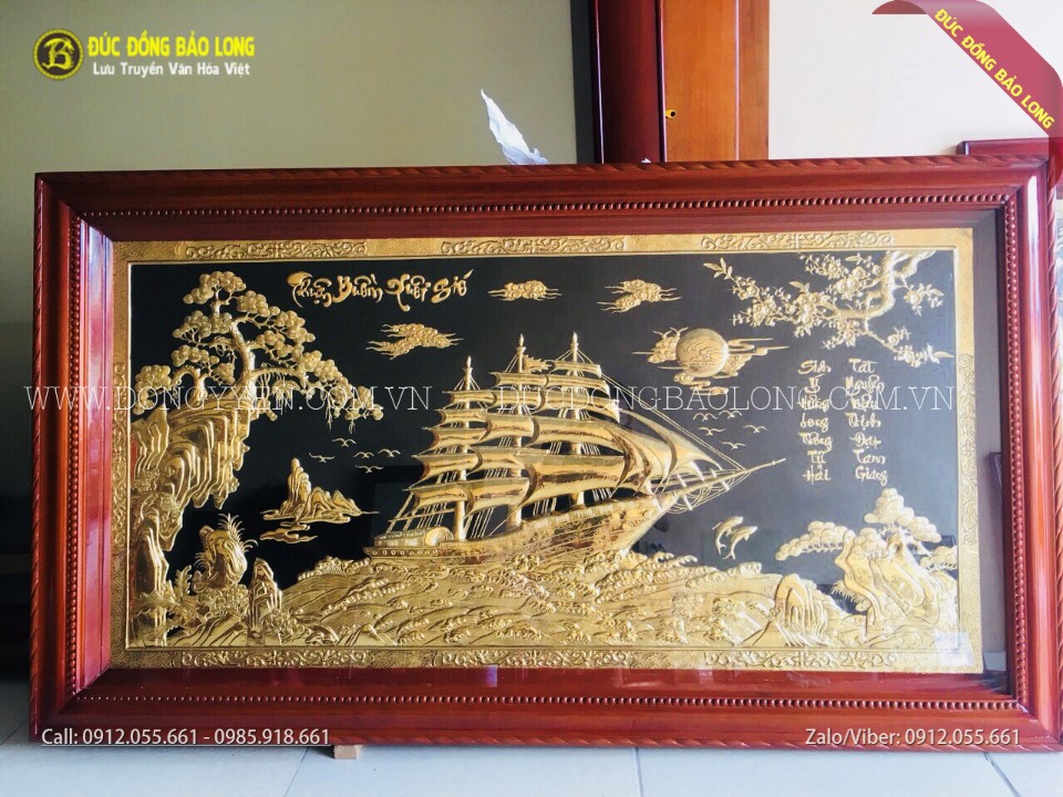 Tranh thuận buồm xuôi gió khung đồng mạ vàng 24k 1m97x1m55