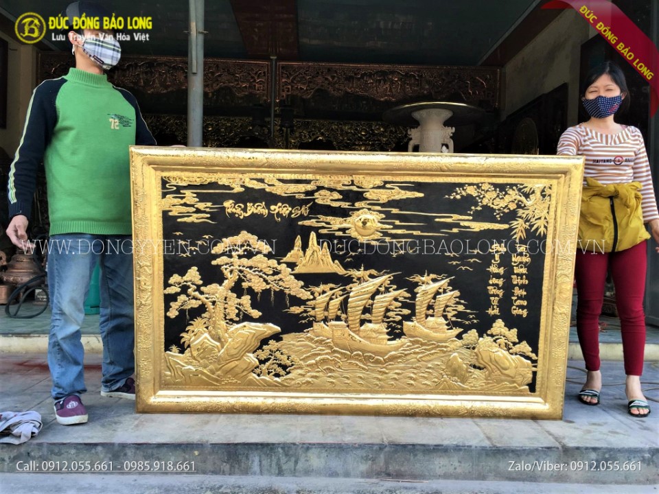 Tranh thuận buồm xuôi gió bằng đồng mạ vàng ròng 24k 1m55x81cm