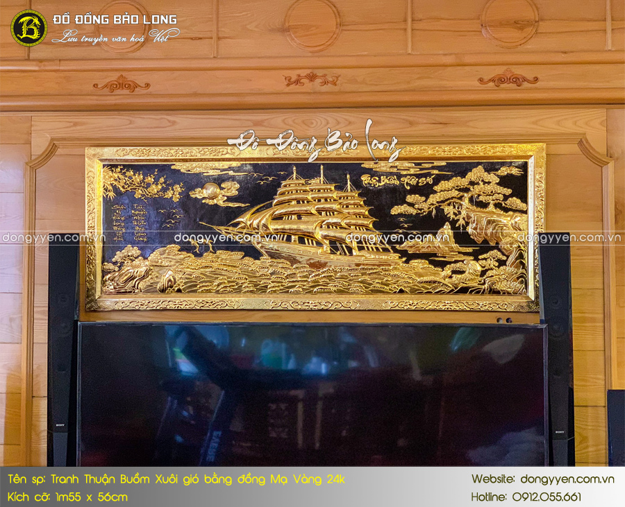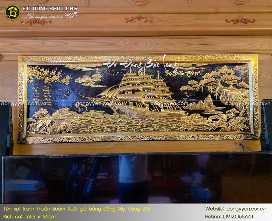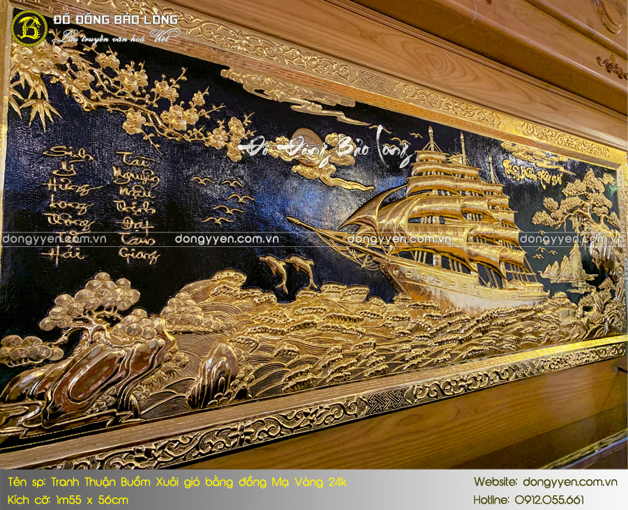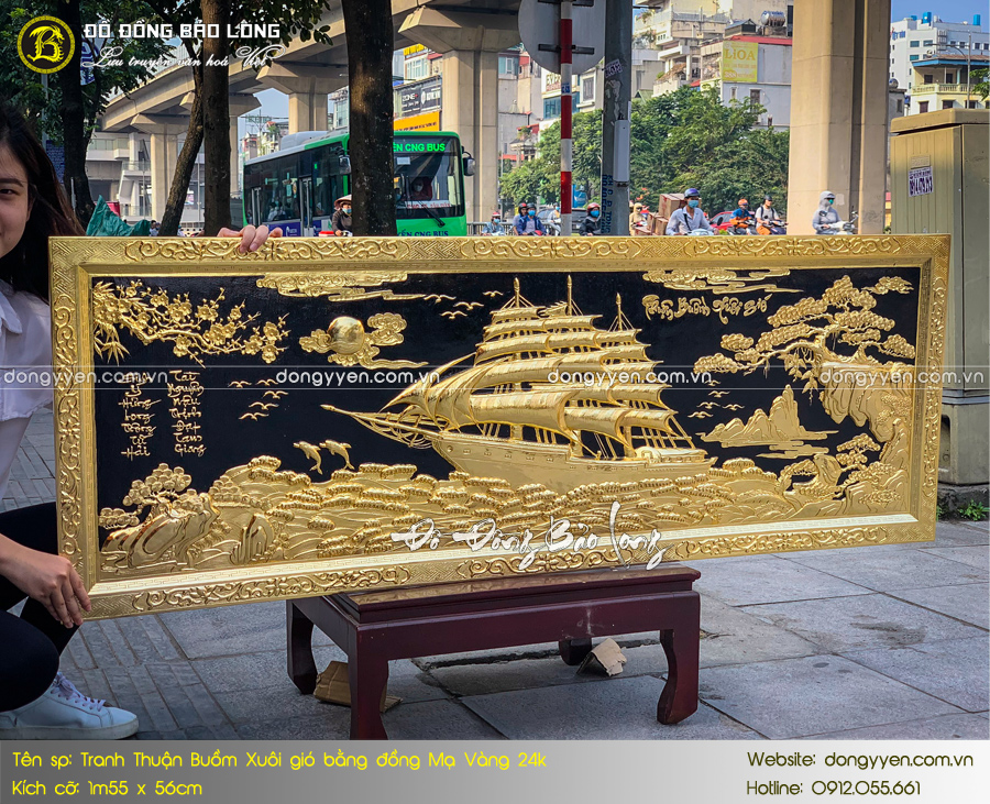 Tranh Thuận Buồm Xuôi Gió mạ vàng 24k 1m55 x 56cm có kiểu dáng khung liền đồng đẹp mắt. Sản phẩm được chạm thủ công 100% bởi các nghệ nhân.