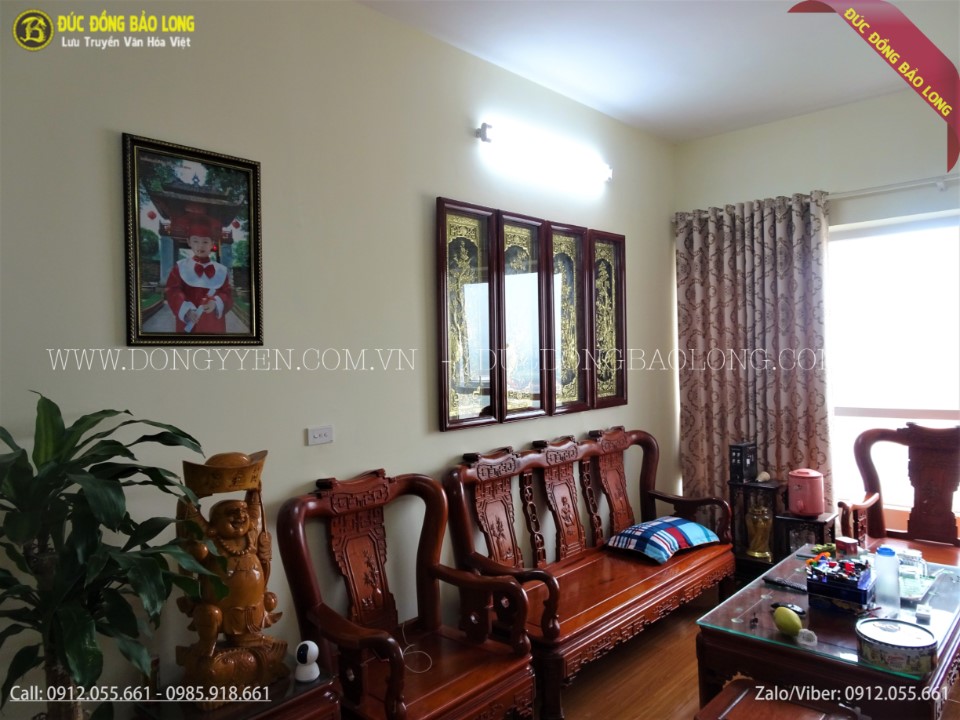 Tranh tứ quý cho khách chung cư Viện 103 KĐT Văn Quán - Hà Đông có kích thước cao 1m1, đây là kích thước rất phù hợp để trang trí trong các căn hộ chung cư. Các kích thước tranh tứ quý khác: 90cm, 1m1, 1m2, 1m5,...ngoài ra chúng tôi nhận chế tác tranh tứ quý theo sự yêu cầu của quý khách. Nhận mạ vàng 24k, dát vàng 9999 lên bề mặt sản phẩm để giúp tranh luôn sáng bóng, có màu vàng rất sang trọng và có độ bền rất cao, gần như không thay đổi theo thời gian.