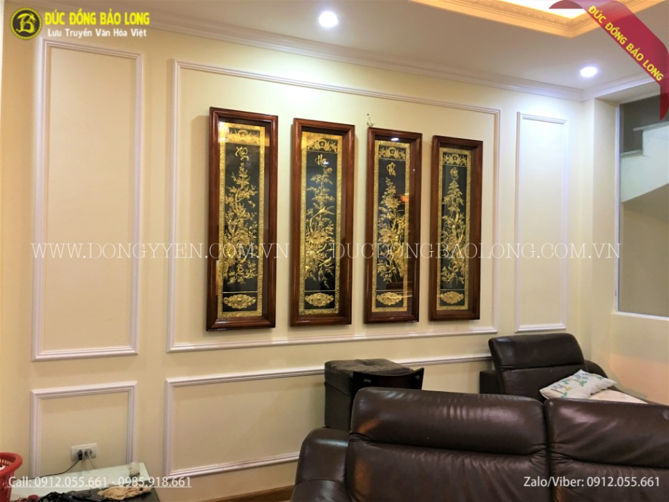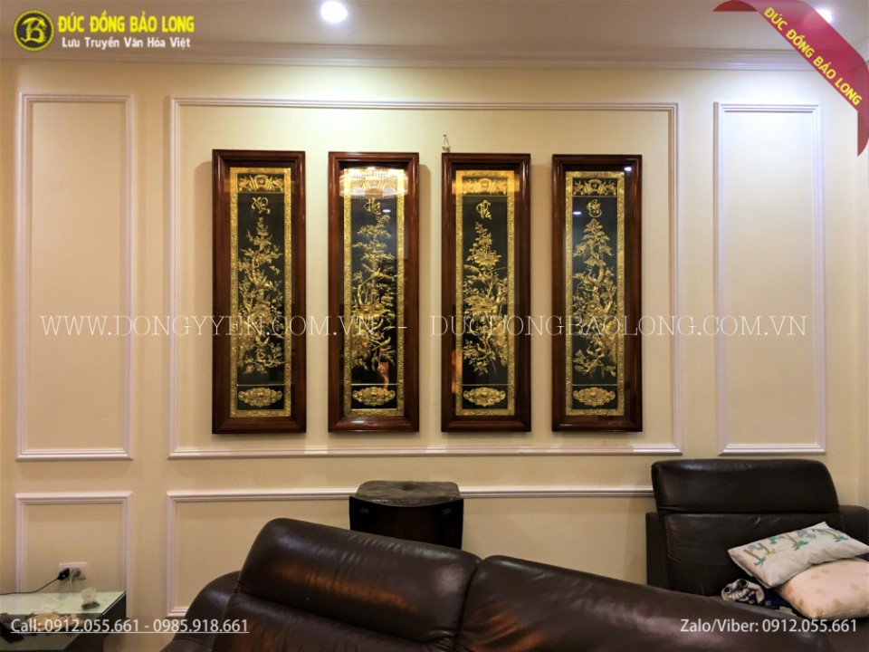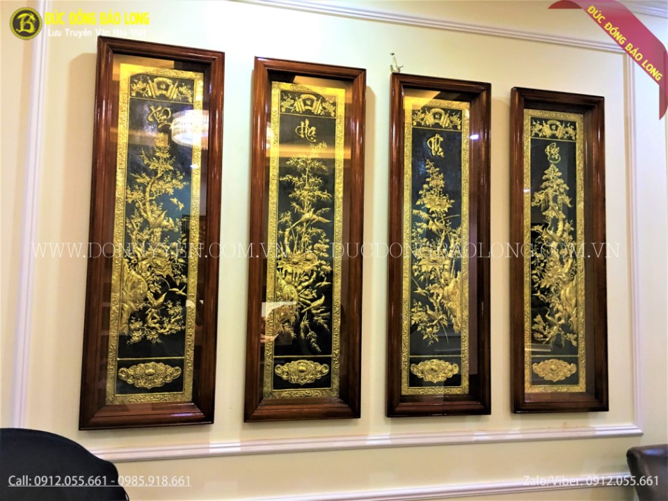 Bộ tranh tứ quý bằng đồng mạ vàng 24k khổ 1m27