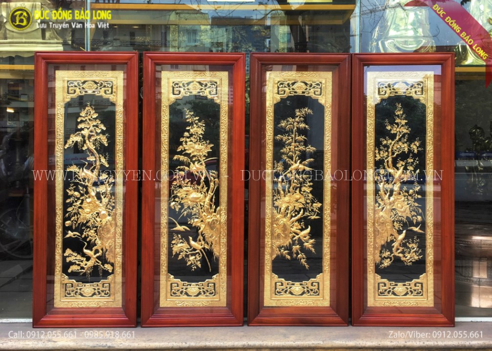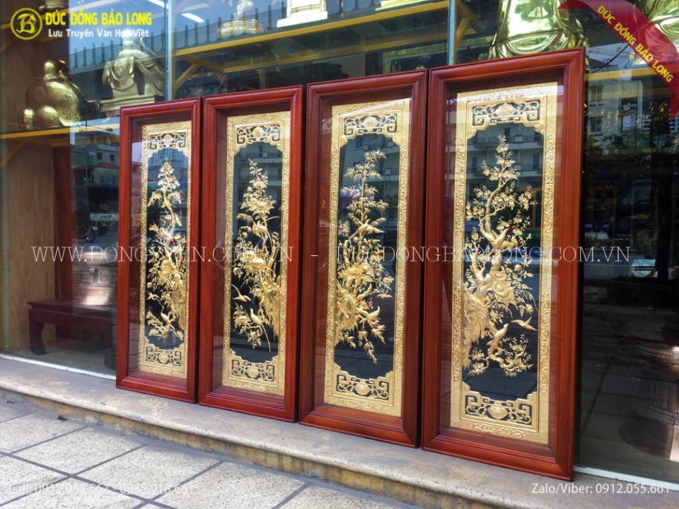 Tranh tứ quý bằng đồng mạ vàng 24k cực đẹp