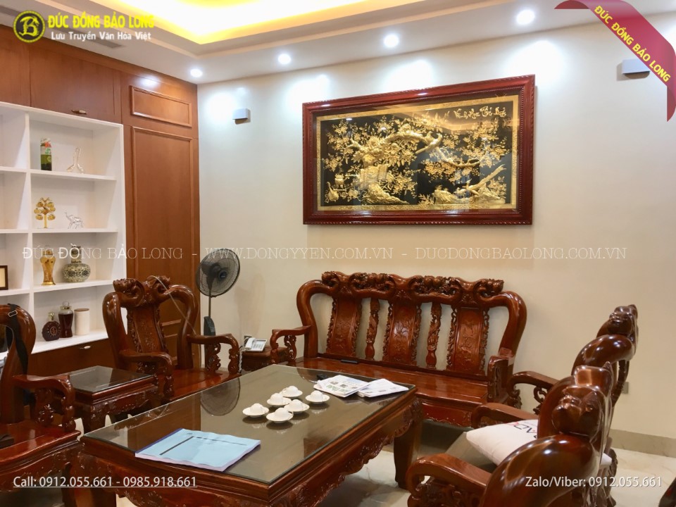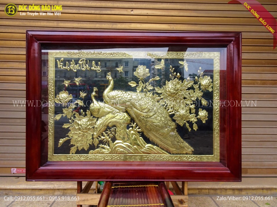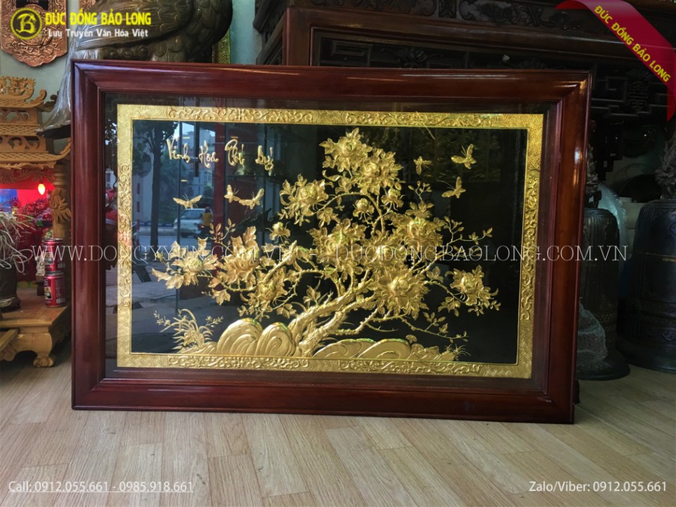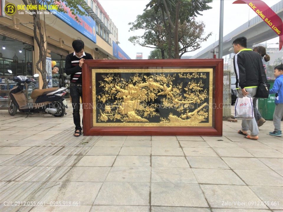 Tranh vinh hoa phú quý bằng đồng mạ vàng mạ bạc 1m97