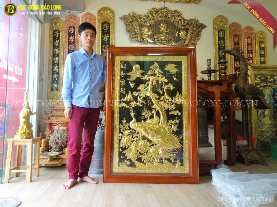Bức vnh hoa công tùng dáng đứng 1m55x1m07 mạ vàng 24k