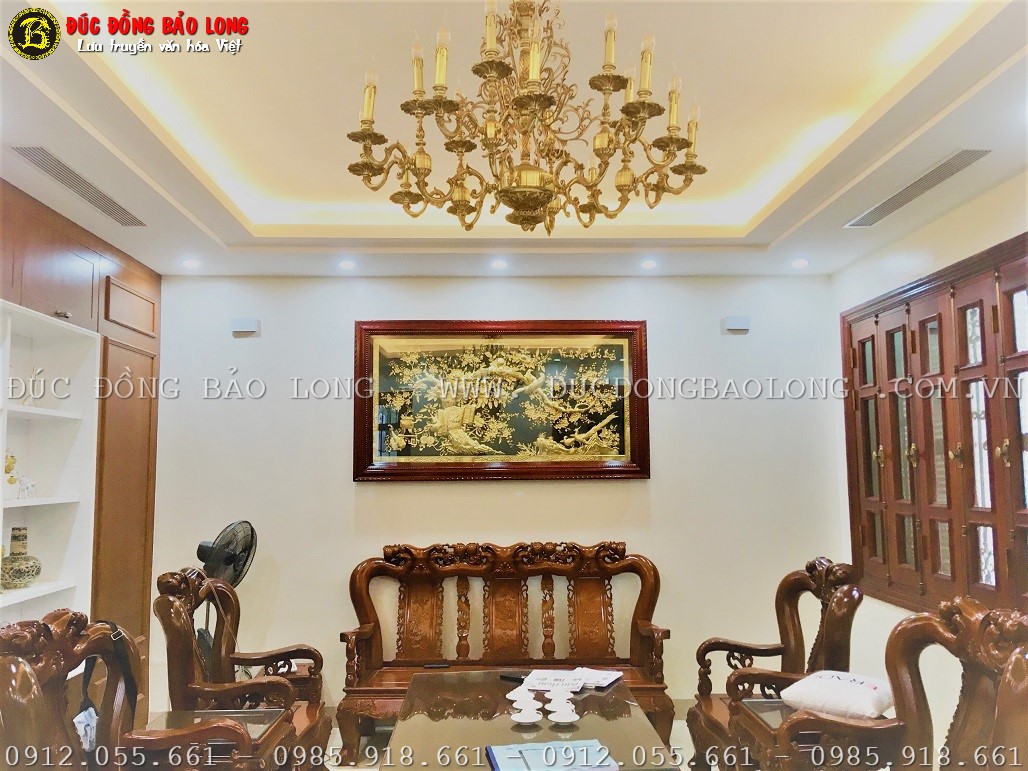 Tranh được chạm hoàn toàn thủ công từ nguyên liệu đồng vàng nhập khẩu Hàn Quốc