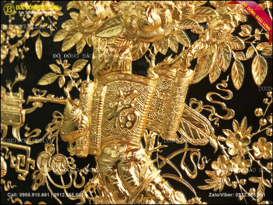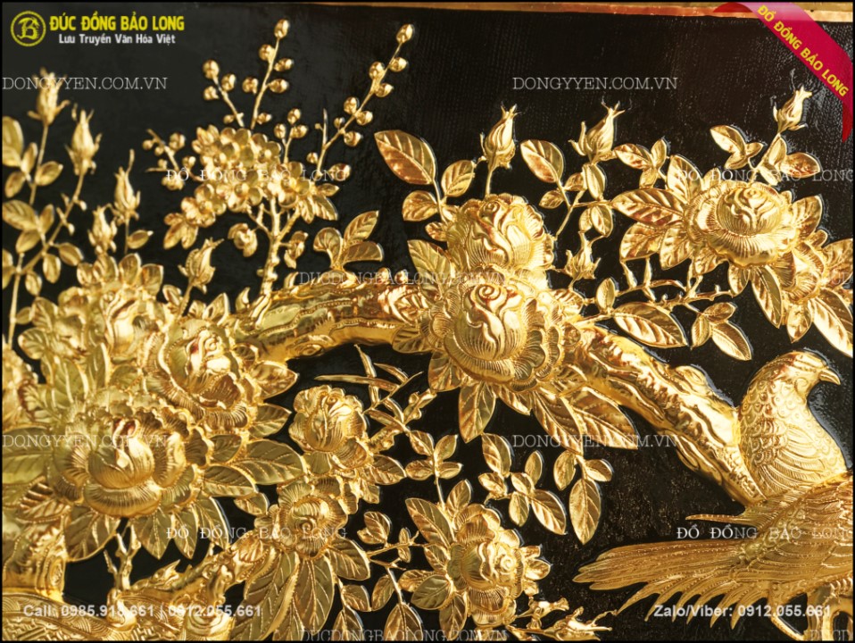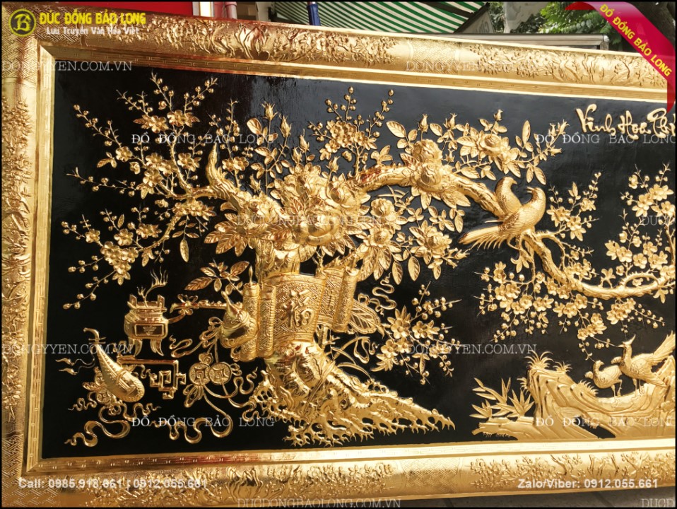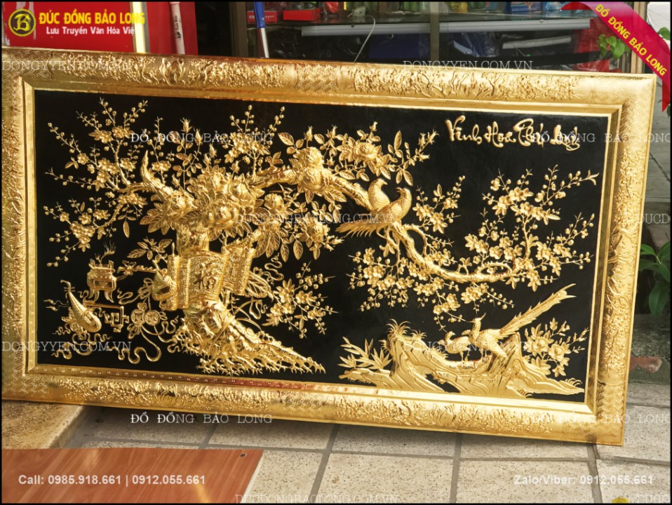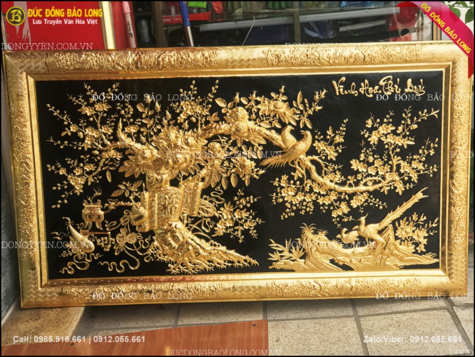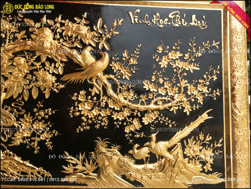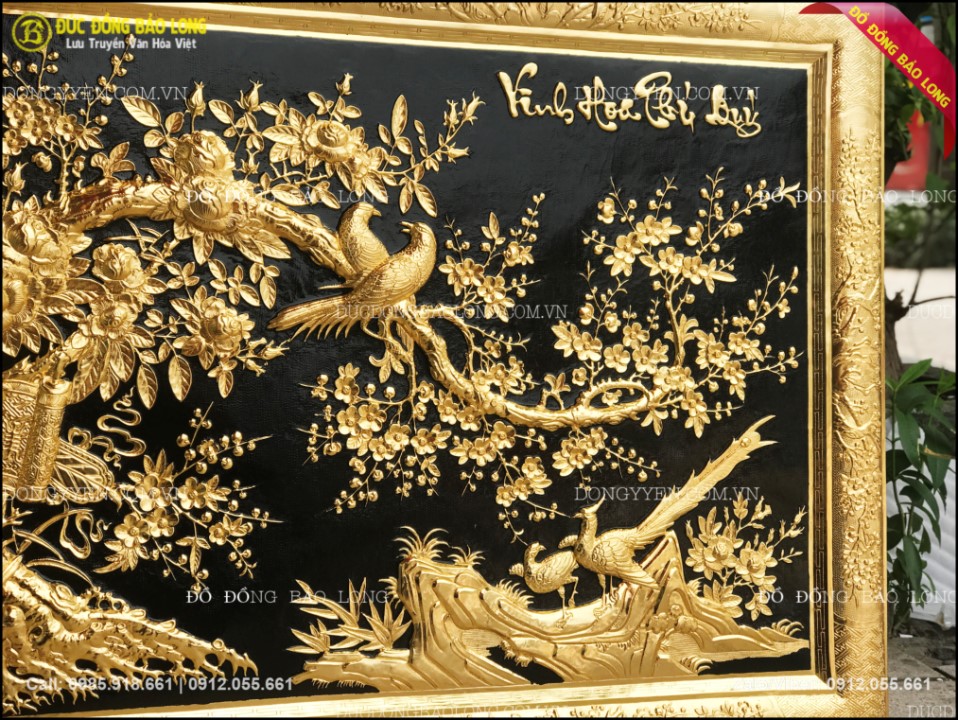 Tranh vinh hoa phú quý bằng đồng mạ vàng 24k