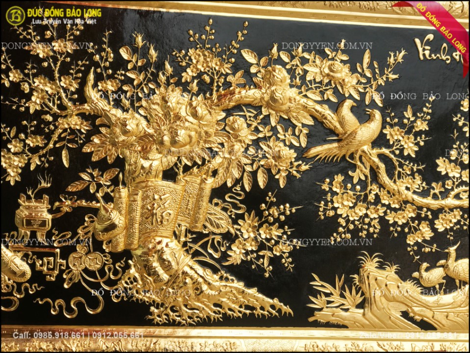 Cơ sở Đúc Đồng Bảo Long đã hoàn thành chế tác bức tranh vinh hoa phú quý bằng đồng mạ vàng 24k khổ 1m55 x 88cm. Đây là một trong những bức tranh đẹp nhất do chính tay các nghệ nhân làng nghề chạm tranh thực hiện. Bức tranh được khách hàng phản hồi rất tích cực đây sẽ là động lực để Bảo Long thực hiện nhiều bức tranh đẹp để phục vụ quý khách trong tương lai.