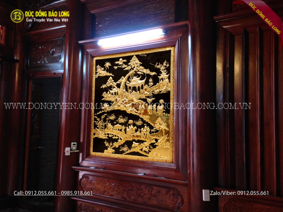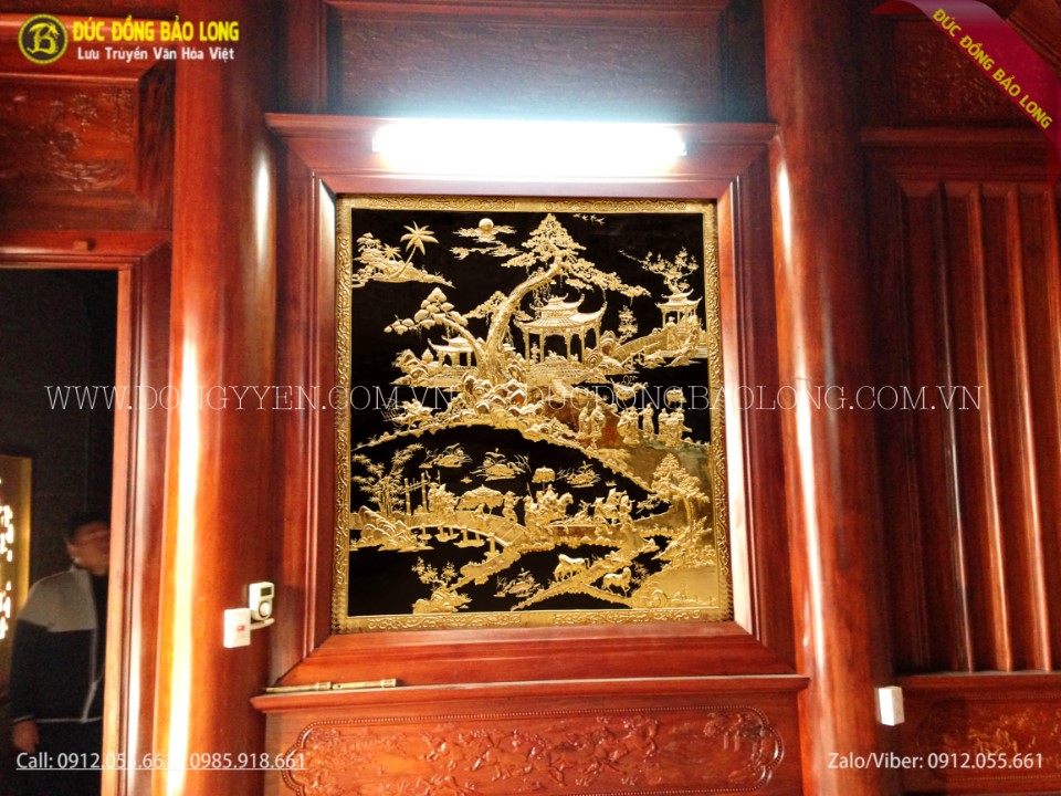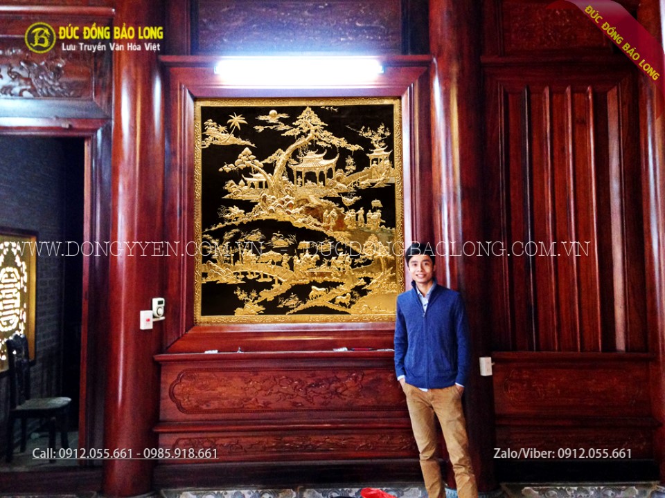 Tranh vinh quy bái tổ bằng đồng mạ vàng 24k cao cấp