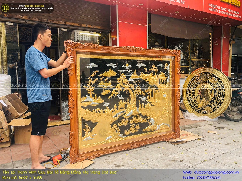 Địa chỉ mua tranh vinh quy bái tổ bằng đồng 1m97 x 1m55 mạ vàng dát bạc của Bảo Long
