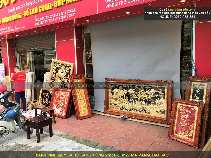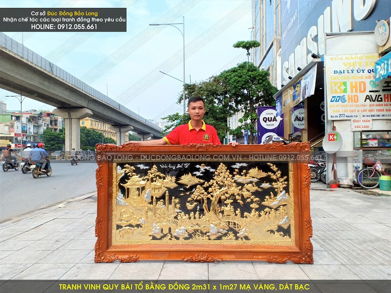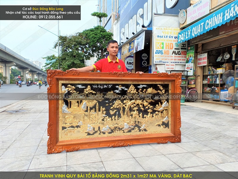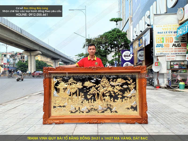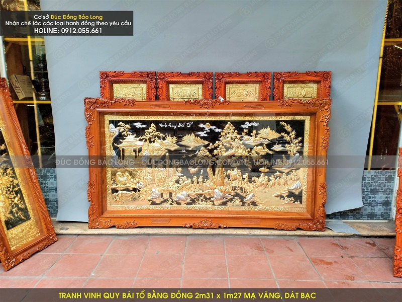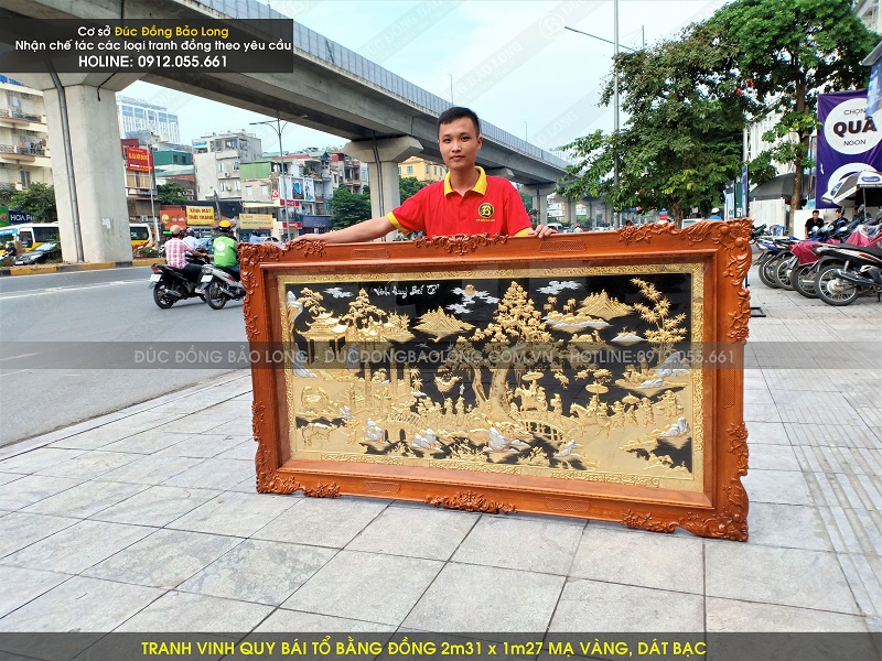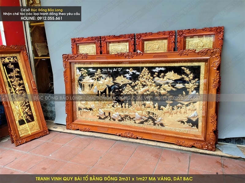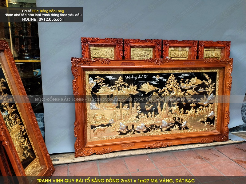 Mẫu tranh vinh quy bái tổ bằng đồng 2m31 x 1m27 mạ vàng, dát bạc