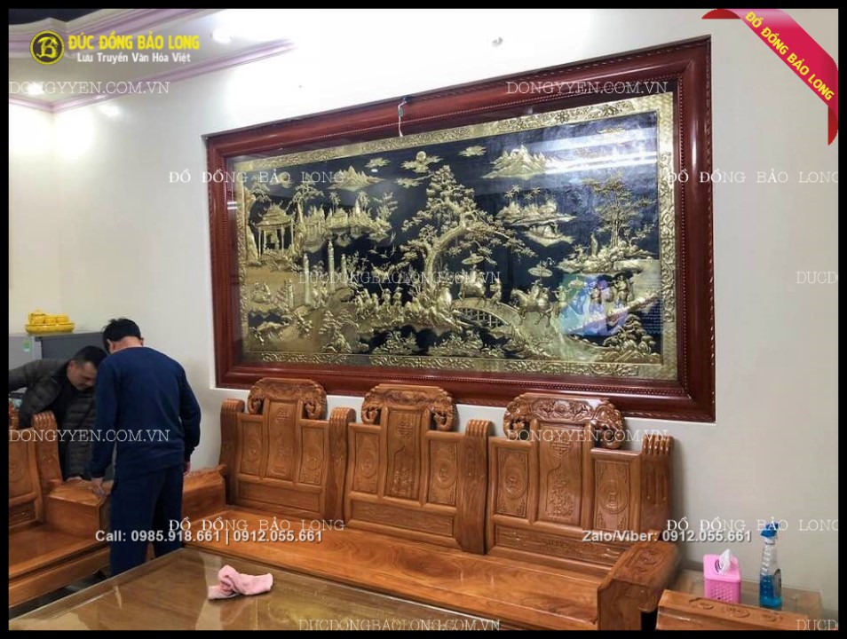 Cơ sở Đúc Đồng Bảo Long vừa hoàn thiện việc chế tác và lắp đặt thành công bức tranh vinh quy bái tổ bằng đồng 2m81 x 1m55 cho khàng hàng tại Nghệ An. Đây là bức tranh cỡ lớn được đặt hàng theo yêu cầu để lắp đặt vừa vào khoảng tường mà khách hàng đã thiết kế từ trước.