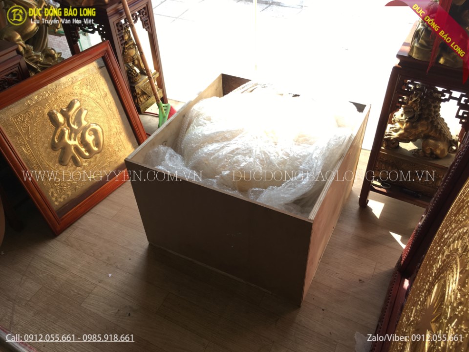 Đúc Đồng Bảo Long vừa đúc và hoàn thiện việc giao hàng trống đồng Đông Sơn 50cm dát vàng 9999 cho khách Đắk Nông. Đây là sản phẩm được chế tác theo sự yêu cầu của khách hàng. Trống Đồng Đông Sơn có đường kính 50cm, được các nghệ nhân đúc theo phương pháp thủ công bằng tay vô cùng tinh xảo, đẹp mắt từ nguyên liệu đồng đỏ thanh khiết. Sau đó, quả trống đồng Đông Sơn được các nghệ nhân dát vàng bằng những miếng vàng quý 9999 vào bề mặt kết dính bền vững bằng nhiều lớp sơn ta loại tốt nhất. Sản phẩm có màu sắc đẹp thể hiện sự đẳng cấp, tuổi thọ màu sắc gần như không đổi theo thời gian bởi vì vàng không tác dụng với không khí và phần lớp hóa chất.