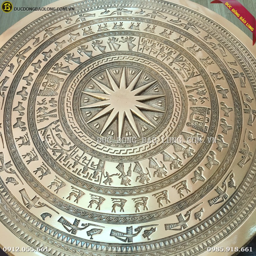 Đây là mẫu trống đồng ngọc lũ 1 hoa văn chìm được đúc thủ công hoàn toàn bằng đồng đỏ thanh khiết, đường nét hoa văn vô cùng tinh xảo, đường kính 50cm nặng chừng 50kg đồng, cao gần 50cm. Trống Đồng ngọc lũ 50cm không chỉ là vật phẩm độc đáo bày trang trí phòng khách, phòng làm việc mà nó còn có tác dụng gìn giữ và lưu truyền văn hóa Việt Nam xưa.