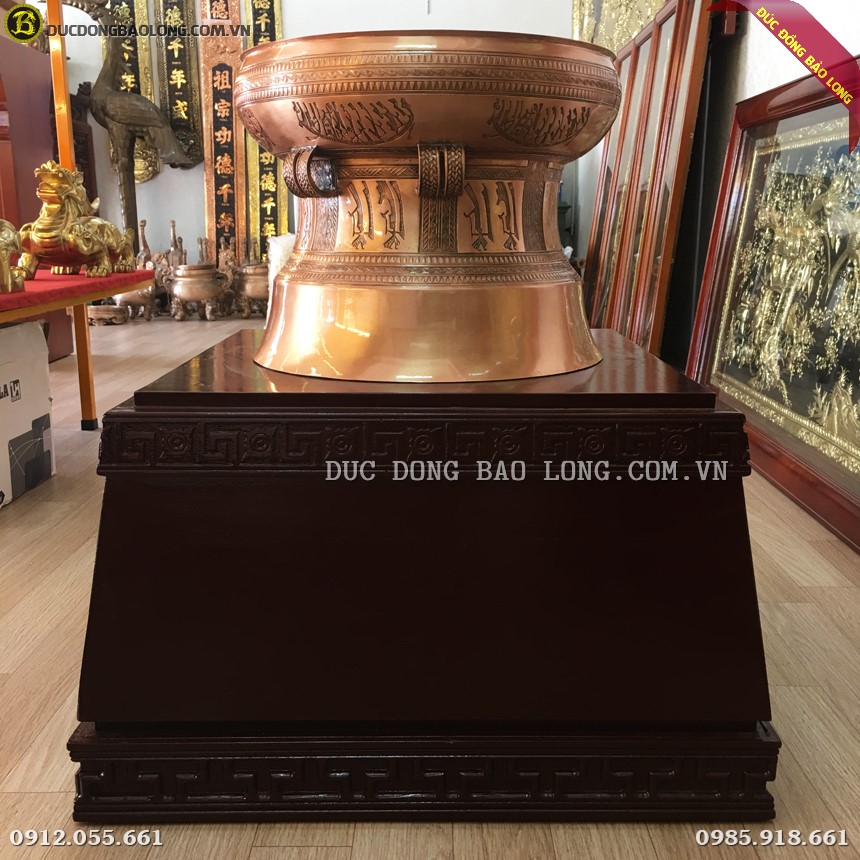 Trống Đồng Ngọc Lũ đường kính 50cm đúc thủ công tinh xảo bằng đồng đỏ hoa văn chìm cực đẹp cao gần 50cm nặng chừng 50kg đồng