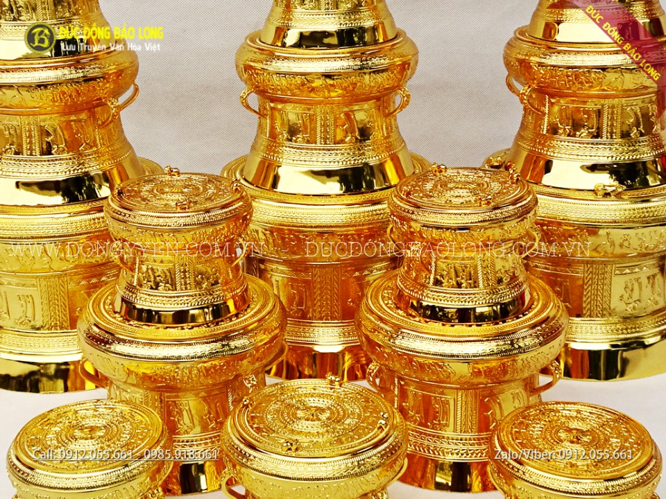 Các kích cỡ trống đồng lưu niệm mạ vàng 24k