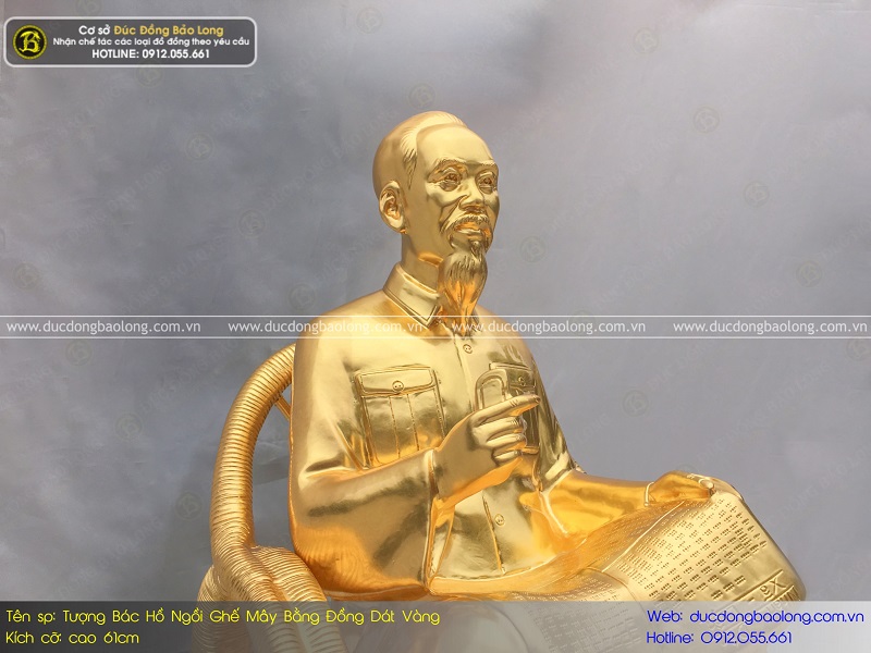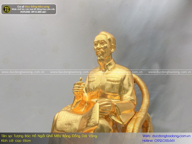 Quy cách đúc tượng Bác Hồ ngồi ghế mây bằng đồng 61cm dát vàng