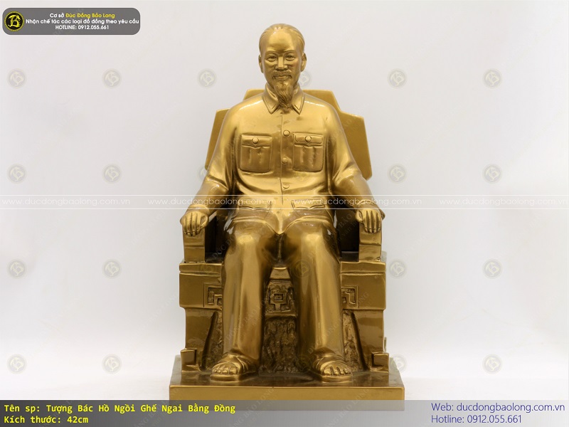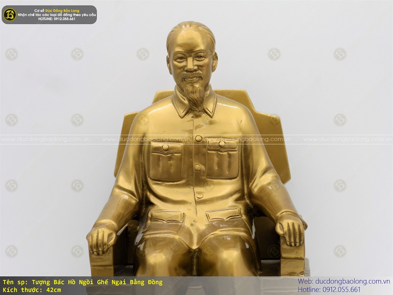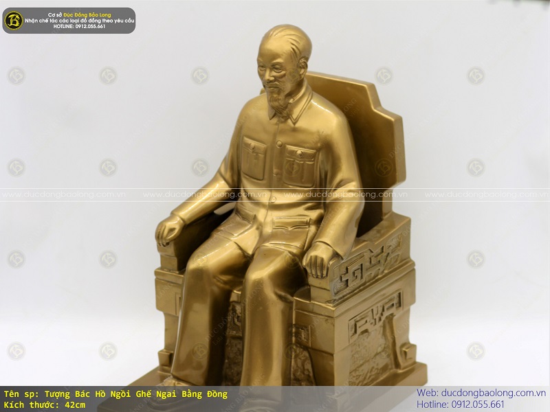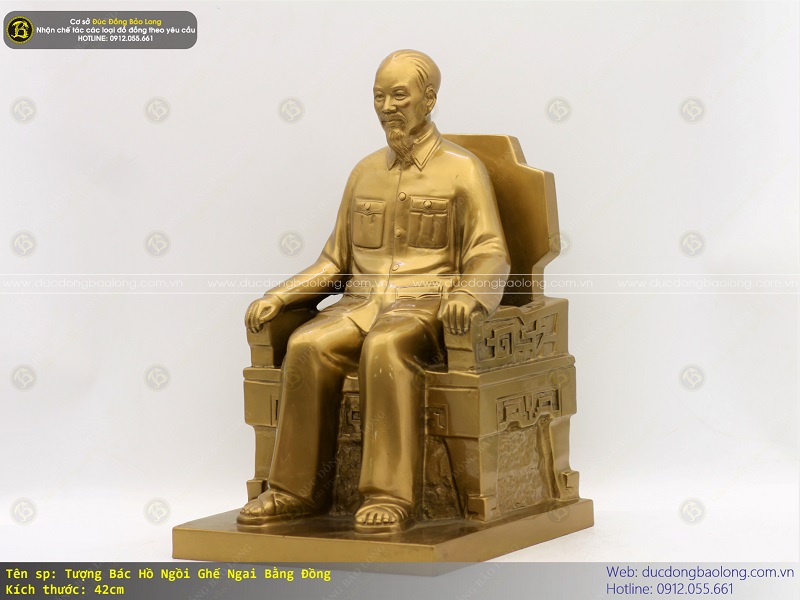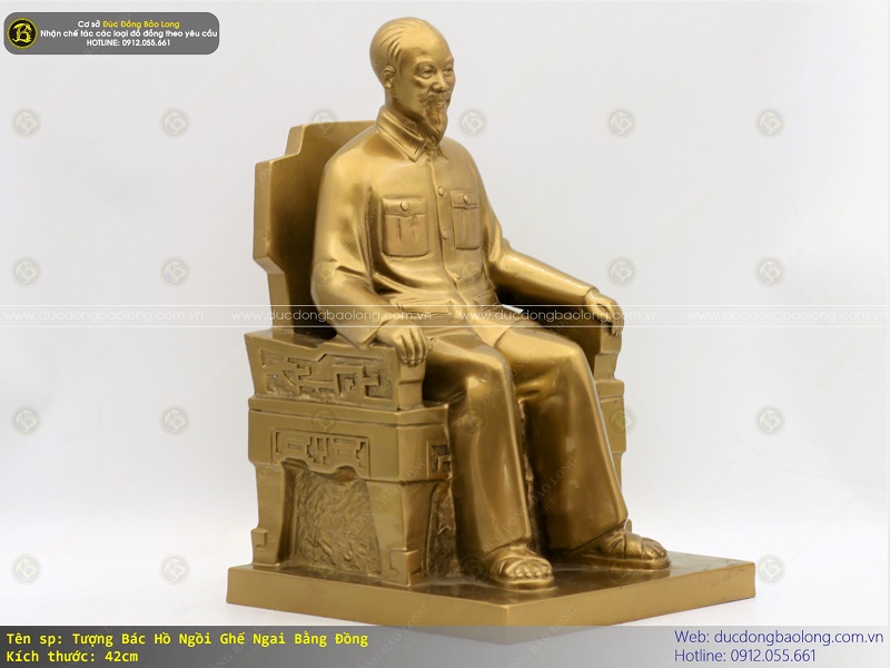Tượng bác Hồ ngồi ghế ngai bằng đồng cao 42cm được do chính nghệ nhân của Bảo Long chế tác