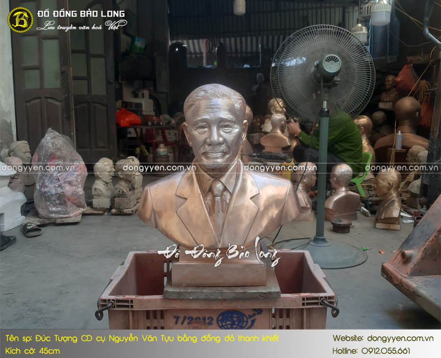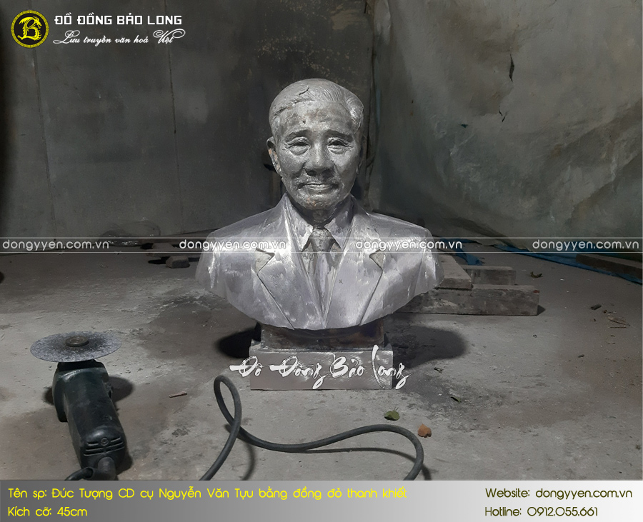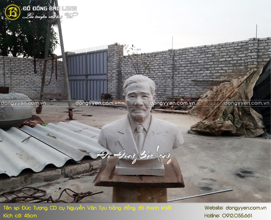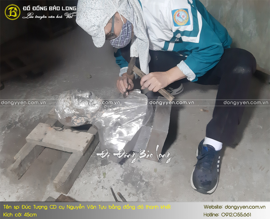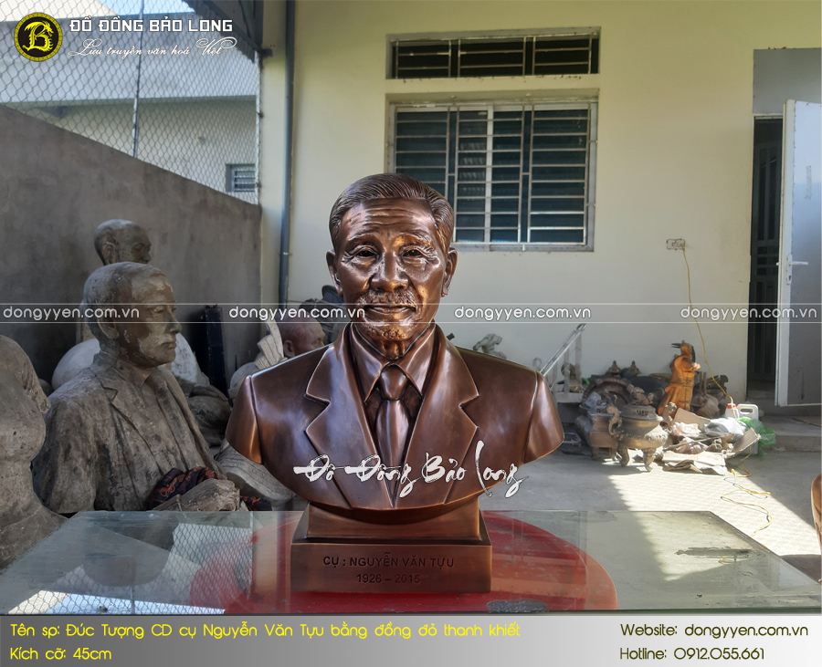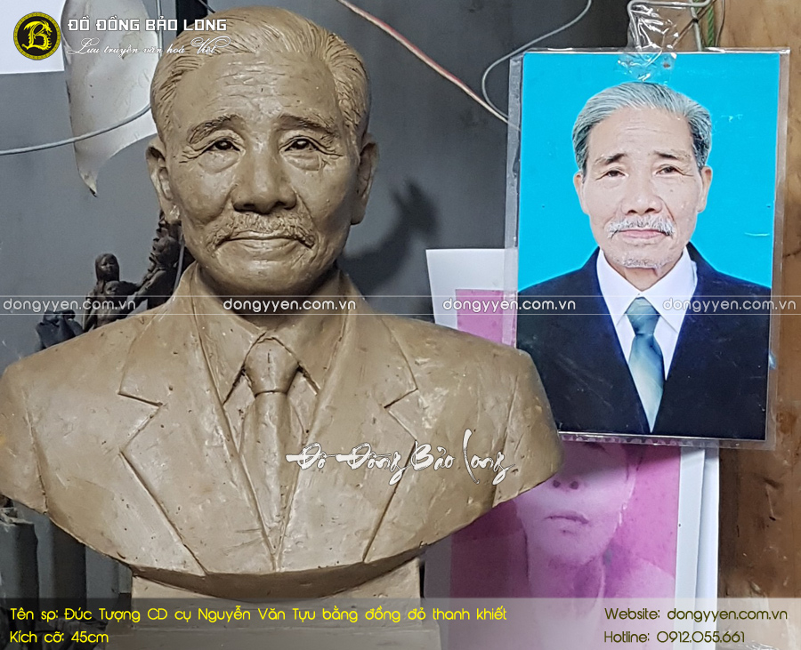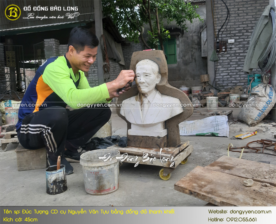 Tượng chân dung cụ Nguyễn Văn Tựu bằng đồng đỏ cao 45cm được đúc thủ công 100%. Pho tượng được các nghệ nhân mô phỏng giống với người thật tới trên 90%.