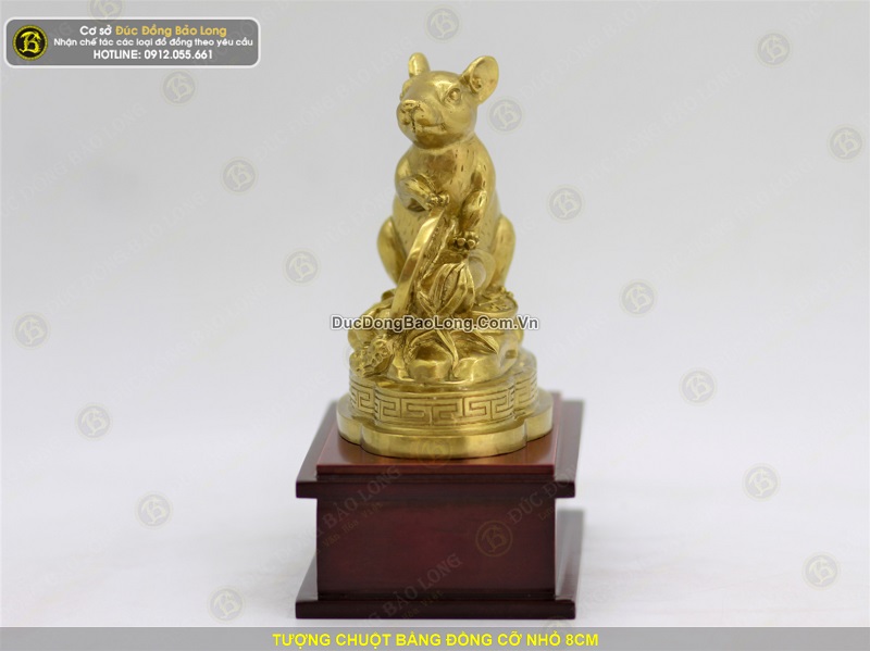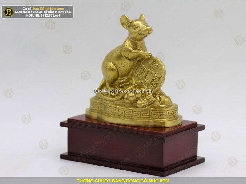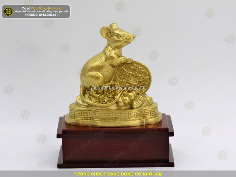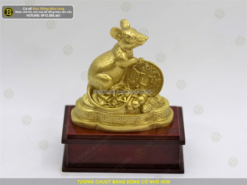 Tượng chuột bằng đồng cỡ nhỏ nhưng được đúc tinh xảo nhờ công nghệ tạo khuôn scan 3D và công nghệ đúc chân không cho đường nét sản phẩm rất sắc nét. Nguyên liệu đúc là loại đồng thau. Tượng có kích thước 8cm rất nhỏ gọn.