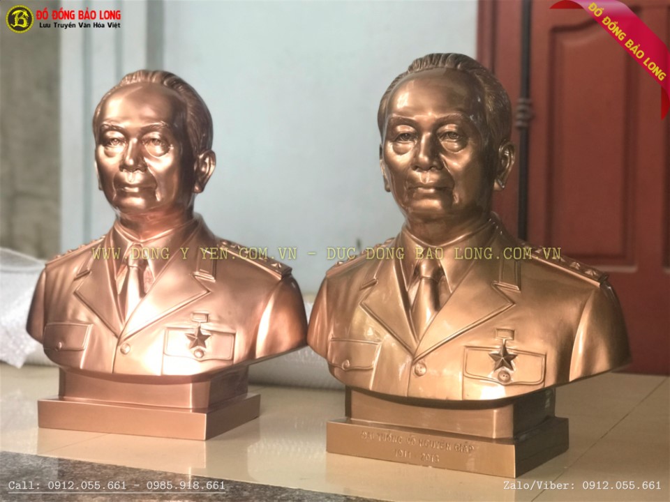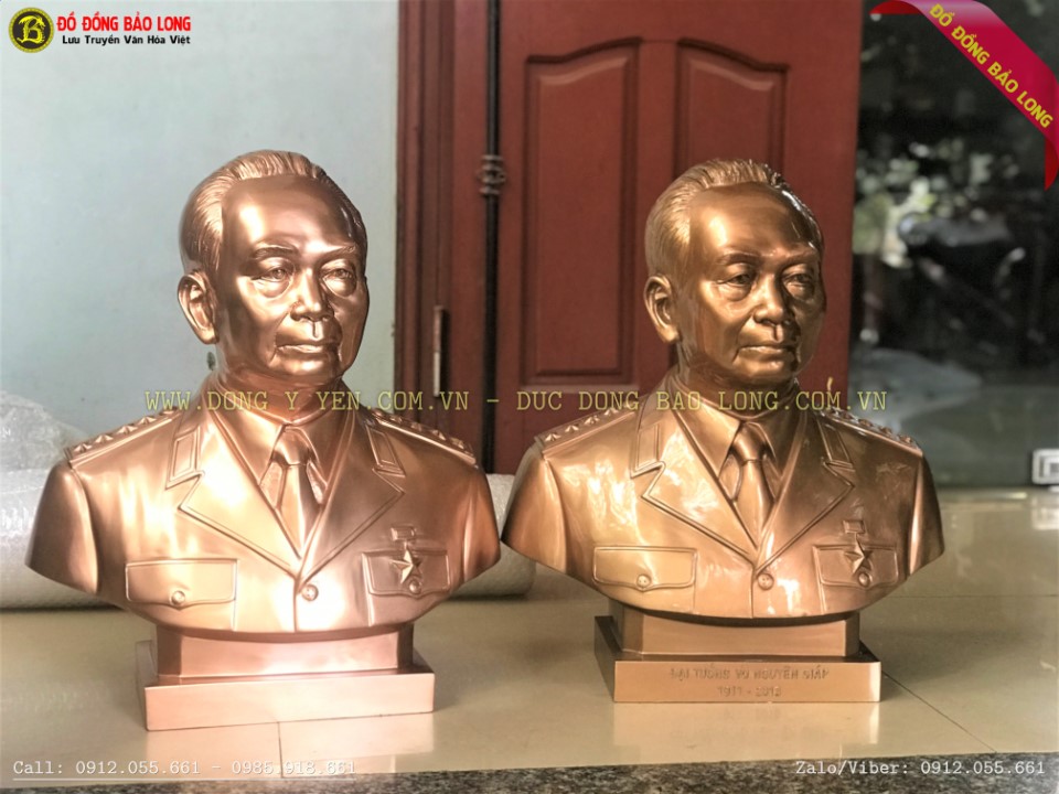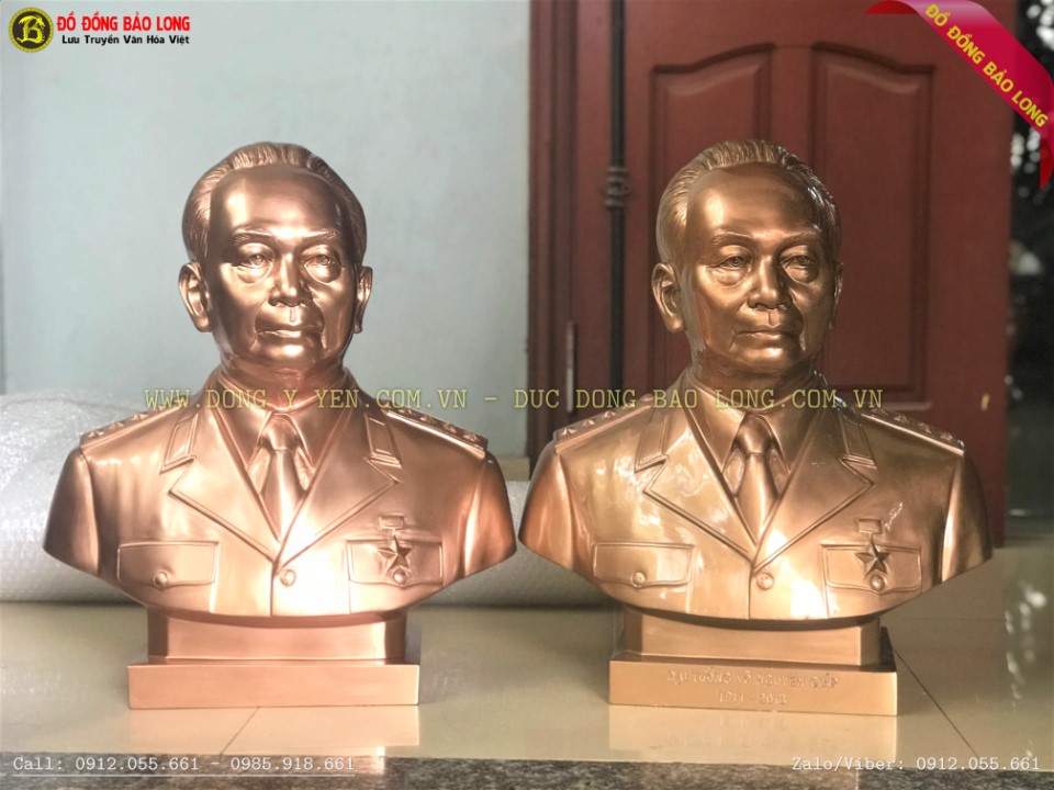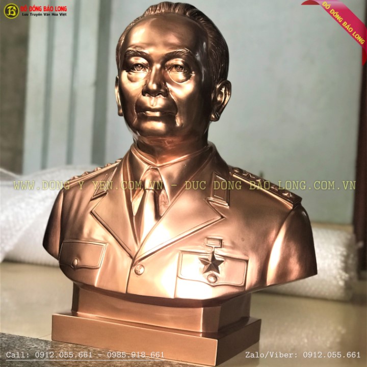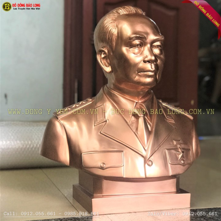 Cơ sở Đúc Đồng Bảo Long xin giới thiệu tới quý khách hàng mẫu Tượng Đại Tướng Võ Nguyên Giáp 50cm mẫu chuẩn quốc gia cực đẹp và giống Bác Giáo đến 95%. Đây là pho tượng về Đại Tướng Võ Nguyên Giáp được Bảo Long tâm huyết thực hiện trên chất liệu đồng, với bản mẫu gốc được thực hiện bởi thợ điêu khắc hàng đầu việt nam, trực tiếp các con của Đại Tướng duyệt mẫu tại xưởng ở Đông Dư - Gia Lâm. Mẫu tượng Đại Tướng Võ Nguyên Giáp 50cm được đúc thủ công 100% theo phương pháp truyền thống, đúc tinh xảo bằng đồng đỏ thanh khiết cao đủ 50cm nặng chừng hơn 20kg đồng. Thờ Tượng chân dung Đại Tướng Võ Nguyên Giáp thể hiện lòng biết ơn, sự tôn kính với 1 nhà lãnh đạo quân sự lỗi lạc tài ba, đức hạnh vẹn toàn.