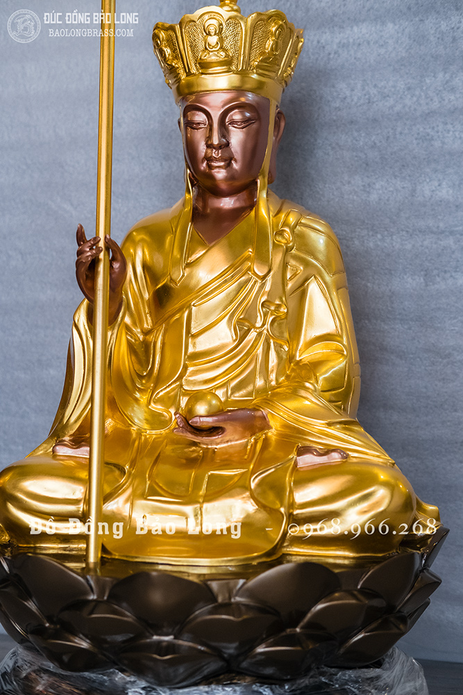 Tượng Địa Tạng Vương Bồ Tát bằng đồng đỏ dát vàng 24k có độ bền vượt trội cùng thời gian