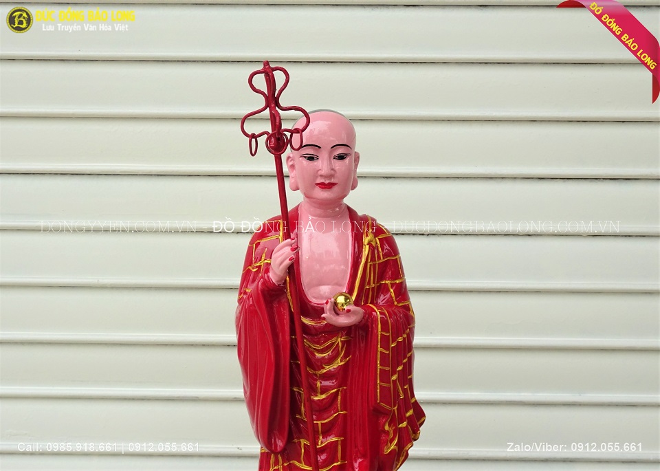 Tượng địa tạng vương bồ tát được đúc hoàn toàn thủ công từ nguyên liệu đồng đỏ thanh khiết. Pho tượng được sơn son thiếp vàng toàn bộ bề mặt, dải áo, cây trượng, diện tượng được tô sơn màu đỏ, phần chân và các chỉ áo được thếp vàng.