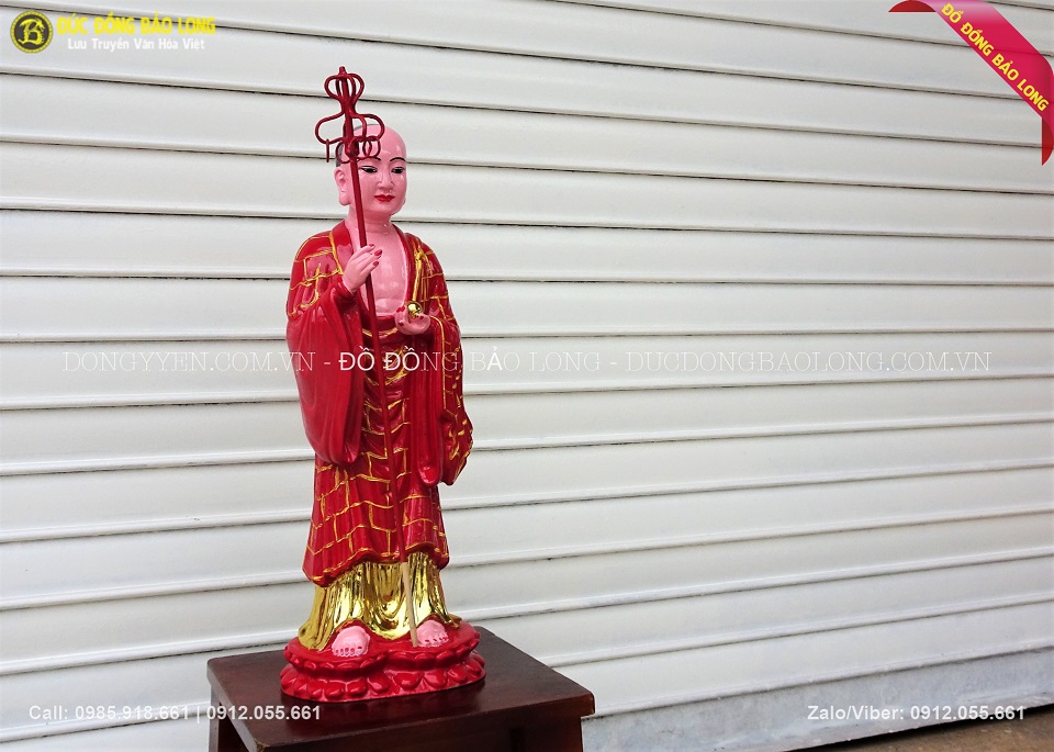 Tượng đại tạng vương bồ tát bằng đồng sơn son thiếp vàng vừa được đúc hoàn thiện theo sự yêu cầu của khách hàng tại Quảng Ninh. Địa tạng vương bồ tát là một vị bồ tát có hạnh nguyện cao cả, thệ nguyện rằng khi nào địa ngục còn có người đau khổ, chưa được giải thoát thì Ngài sẽ còn là bồ tát, chưa thể đắc quả vị Phật “Địa ngục vị không, Thệ bất thành Phật, Chúng sinh tận độ, Phương chứng bồ đề”.