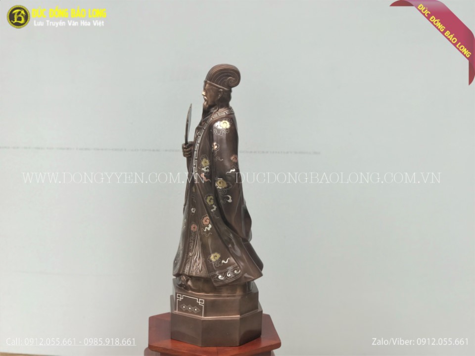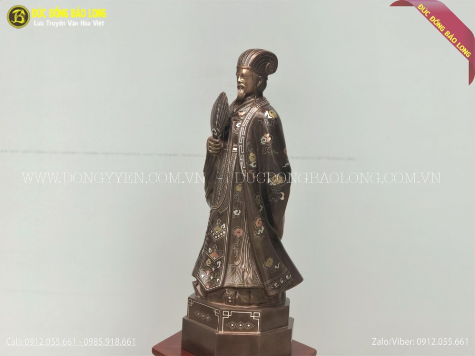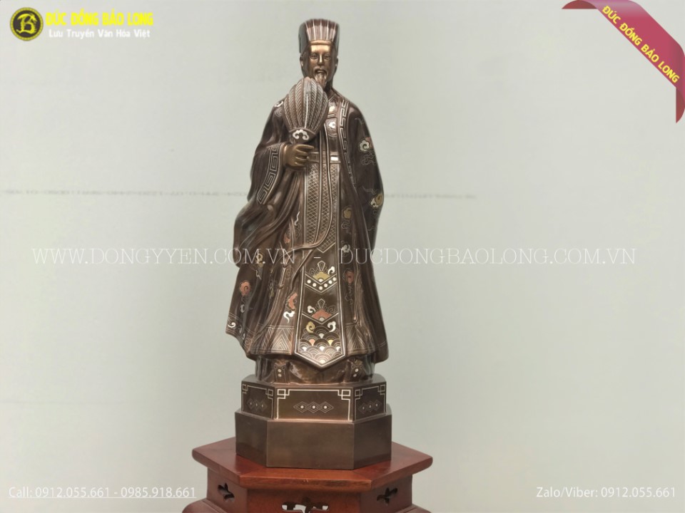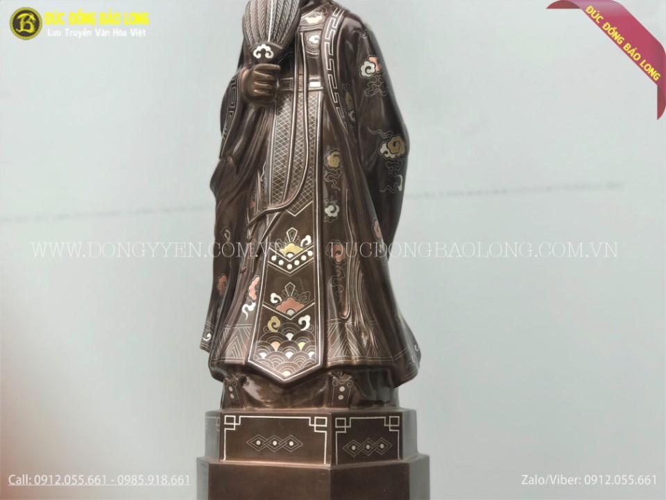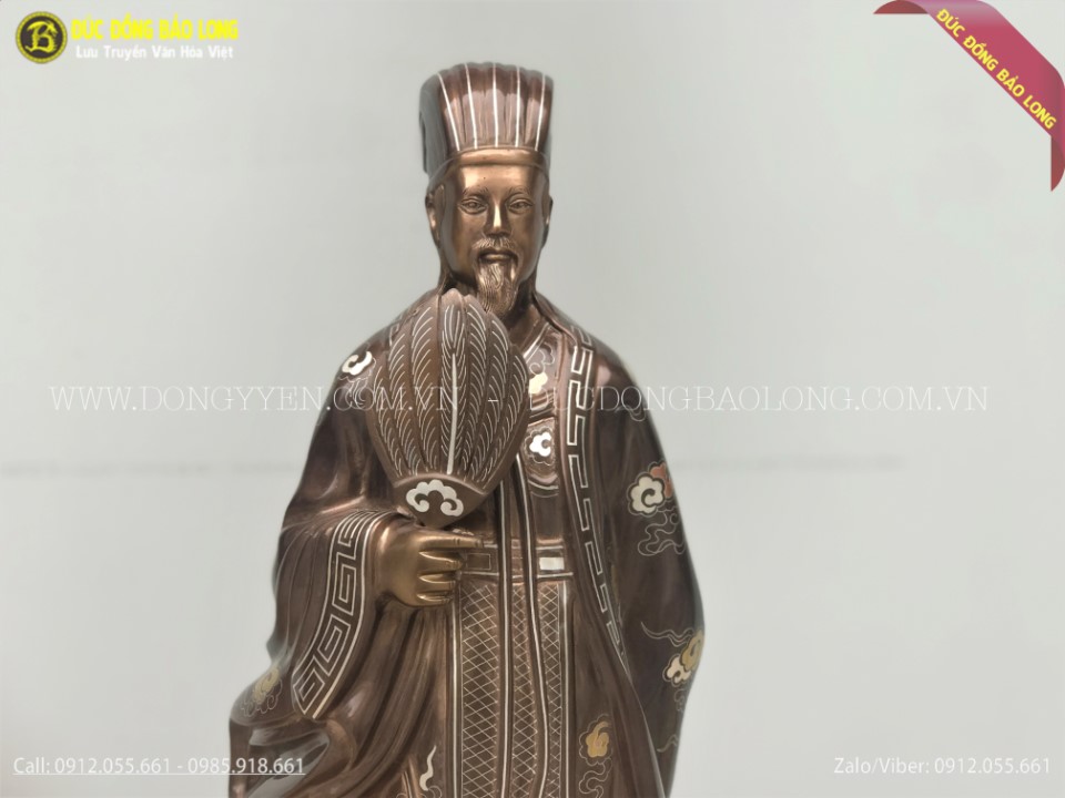Tượng Khổng Minh Gia Cát Lượng Bằng Đồng Khảm Tam Khí