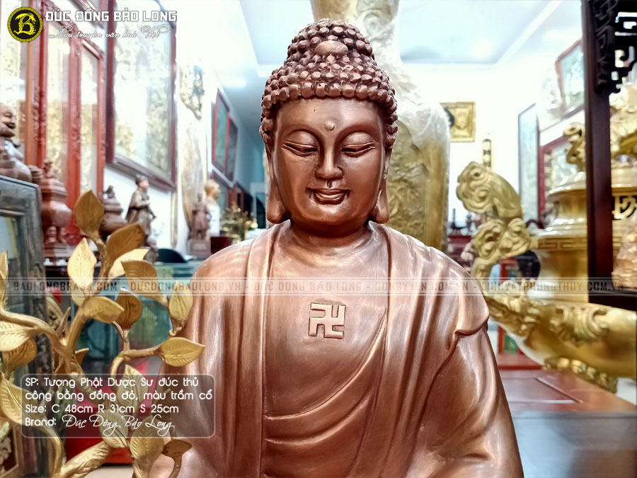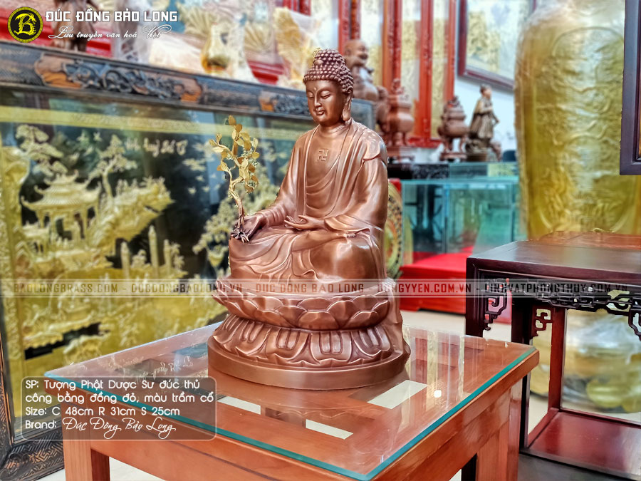 Tượng phật dược sư đồng đỏ màu trầm cổ cao 48cm đẹp