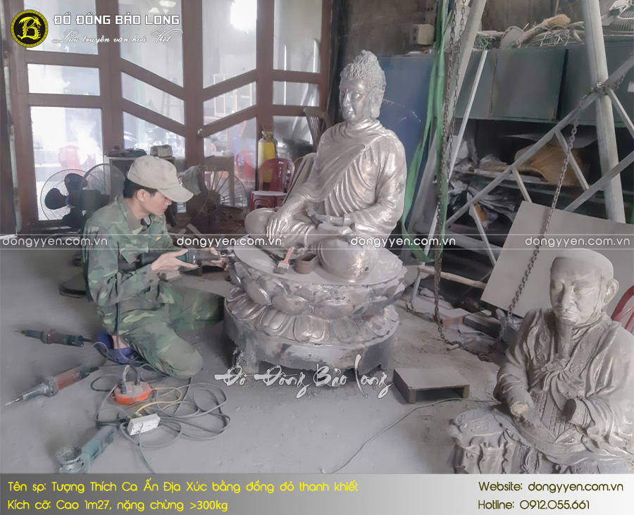 Tượng Phật Thích Ca bắt ấn Địa Xúc sau khi đúc xong, sẽ tiến hành hoàn thiện bề mặt