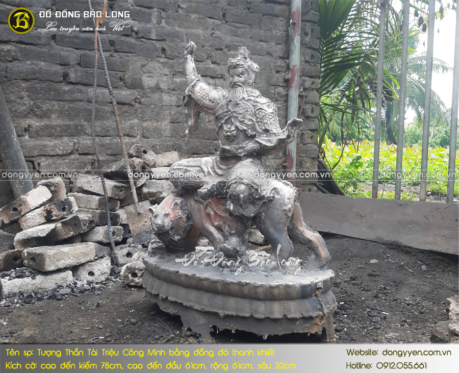 Tượng Thần Tài Triệu Công Minh bằng đồng đỏ cao 61cm