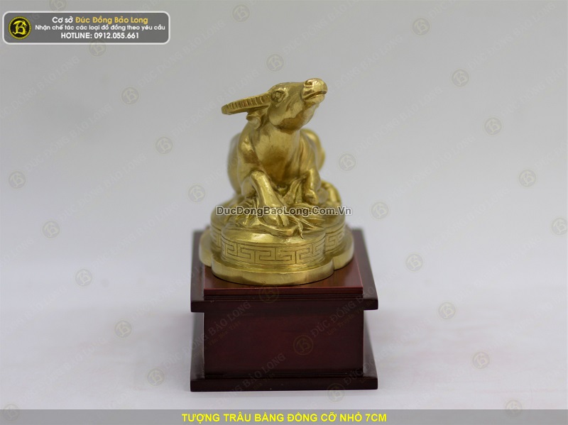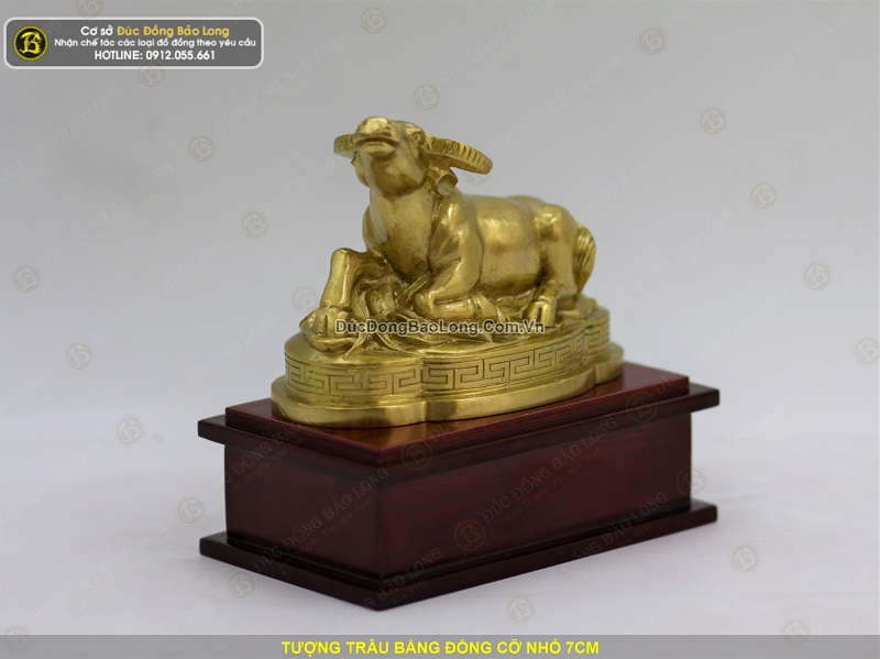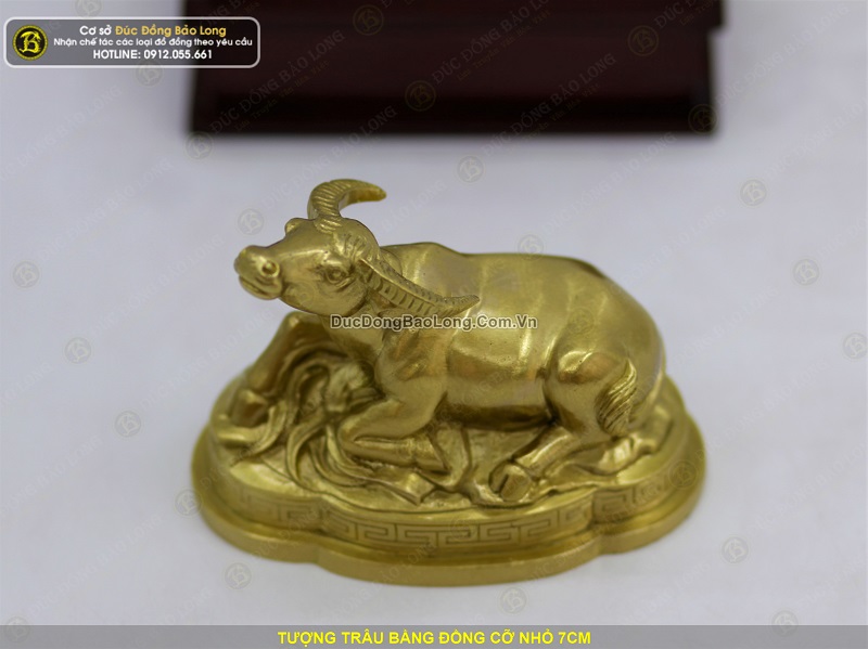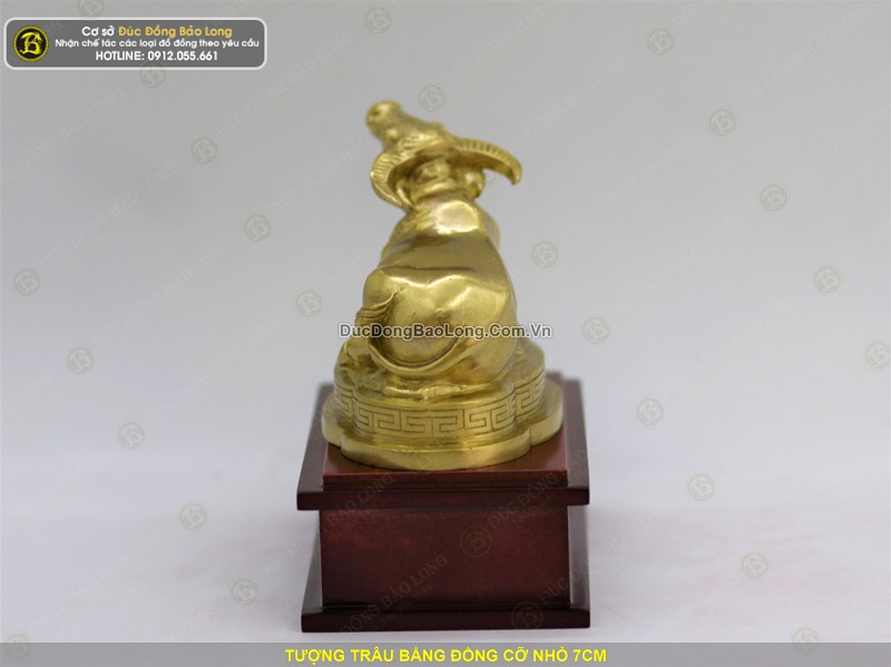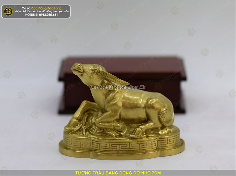 Tượng trâu bằng đồng cỡ nhỏ nhưng được đúc tinh xảo nhờ công nghệ tạo khuôn scan 3D và công nghệ đúc chân không cho đường nét sản phẩm rất sắc nét. Nguyên liệu đúc là loại đồng thau. Tượng có kích thước 7cm rất nhỏ gọn.