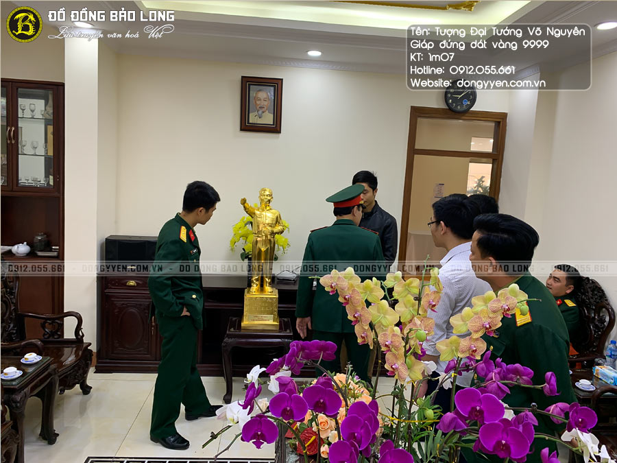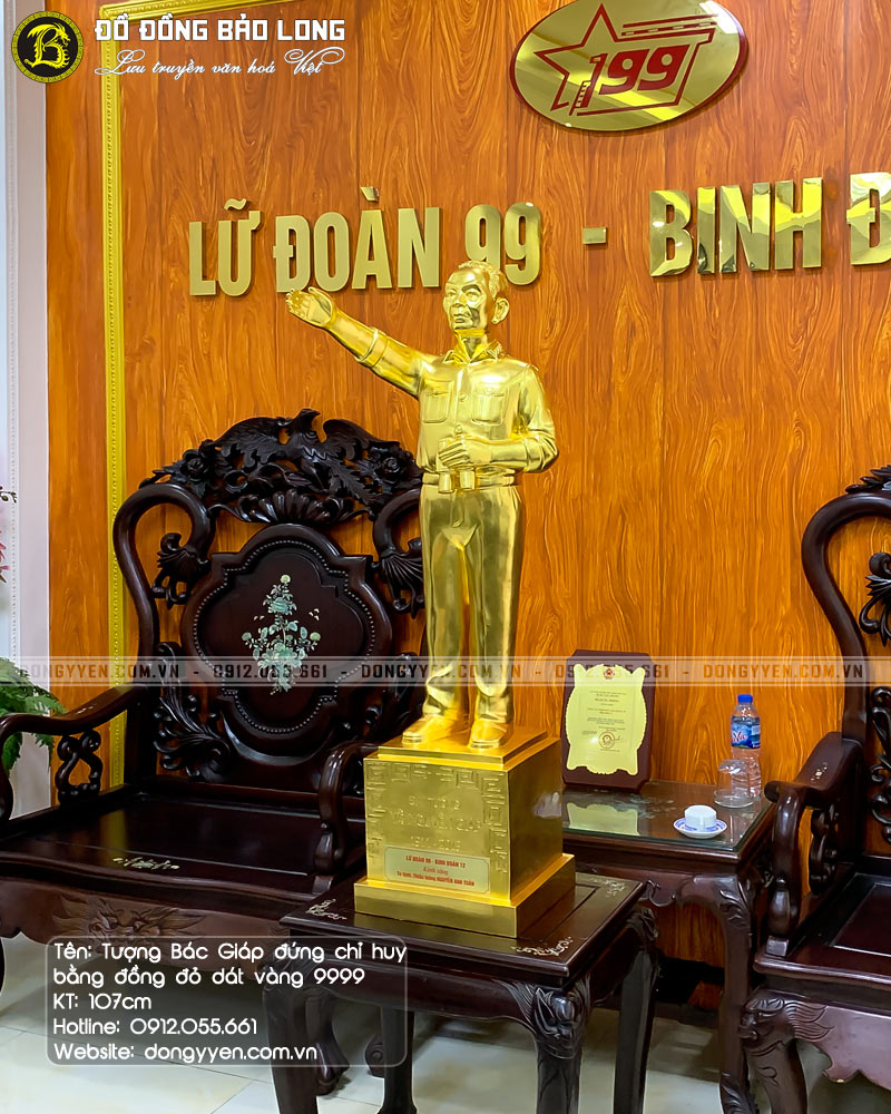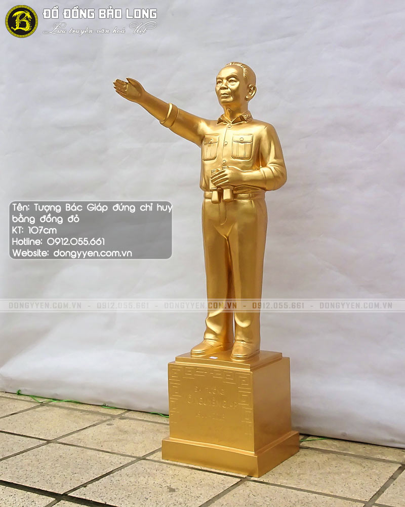 Tượng Bác Giáp đứng chỉ huy bằng đồng đỏ dát vàng 9999 cực đẹp