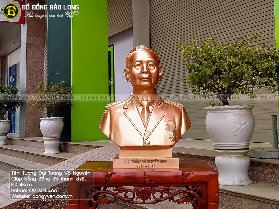 Đặc biệt, Đúc Đồng Bảo Long nhận chế tác tượng Võ Nguyên Giáp theo yêu cầu của khách hàng về mẫu mã, kích thước. Để được tư vấn chi tiết và báo giá tốt nhất, quý khách vui lòng liên hệ với chúng tôi qua Hotline: 0912.055.661