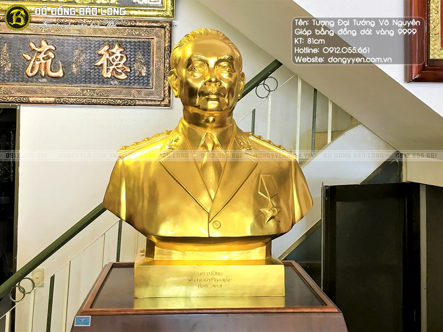 + Tượng Võ Nguyên Giáp bằng đồng dát vàng 9999: Sản phẩm thuộc phân khúc cao cấp, với bề mặt được dát vàng ta chuẩn, cho màu sắc sang trọng, độ bền trường tồn theo năm tháng. Tượng dát vàng có giá trị sử dụng truyền đời.