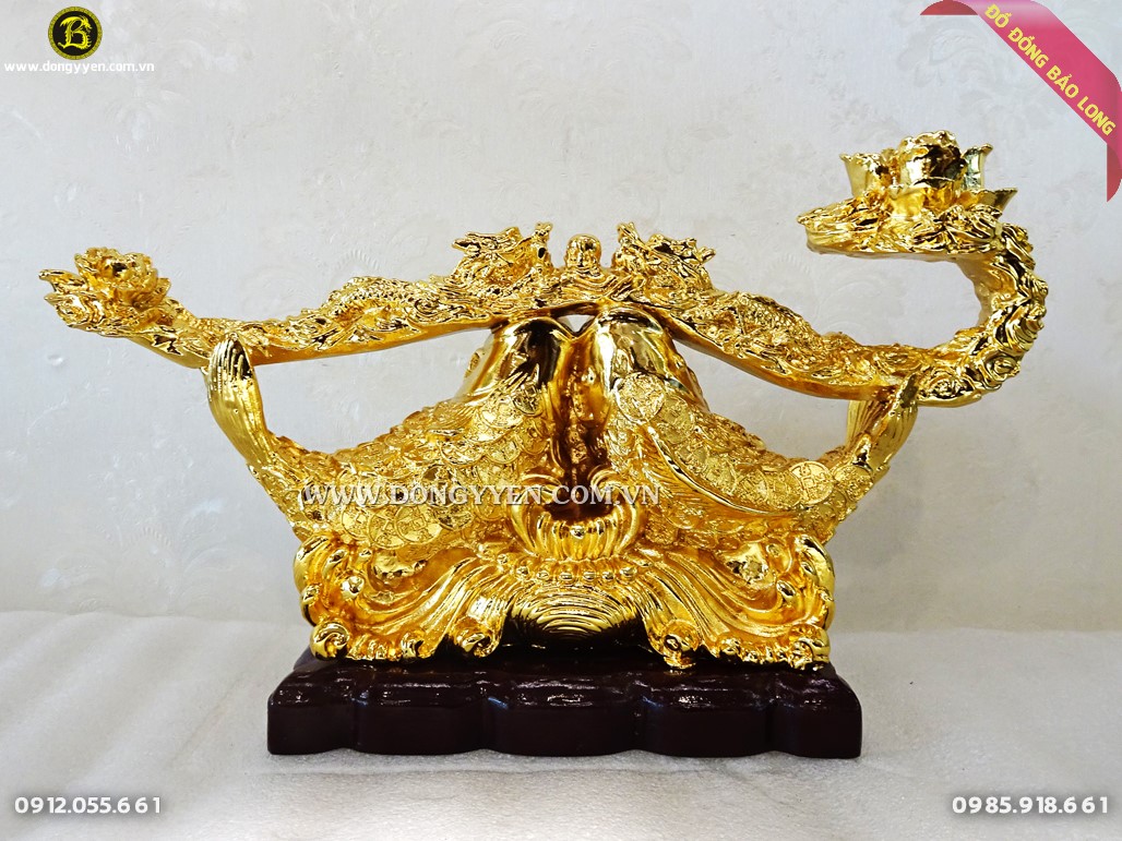 Tượng đôi cá chép gậy như ý hóa rồng thếp vàng là vật phẩm phong thủy cao cấp, kết hợp giữa vương trượng (gậy như ý) và hình ảnh cá chép tạo thành một sức mạnh to lớn, mang ý nghĩa trọn vẹn.