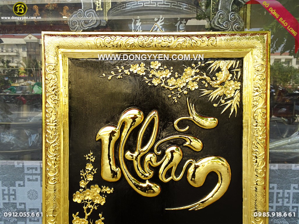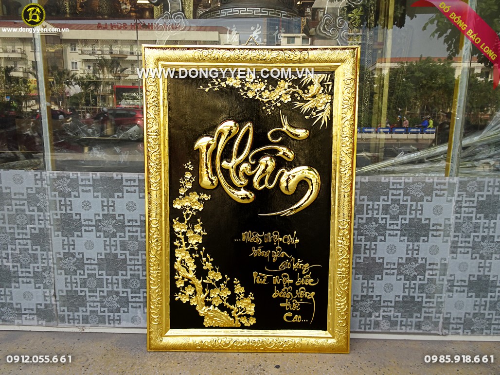 Tranh chữ Nhẫn khổ đứng 81cm x 55cm mạ vàng 24k cực đẹp