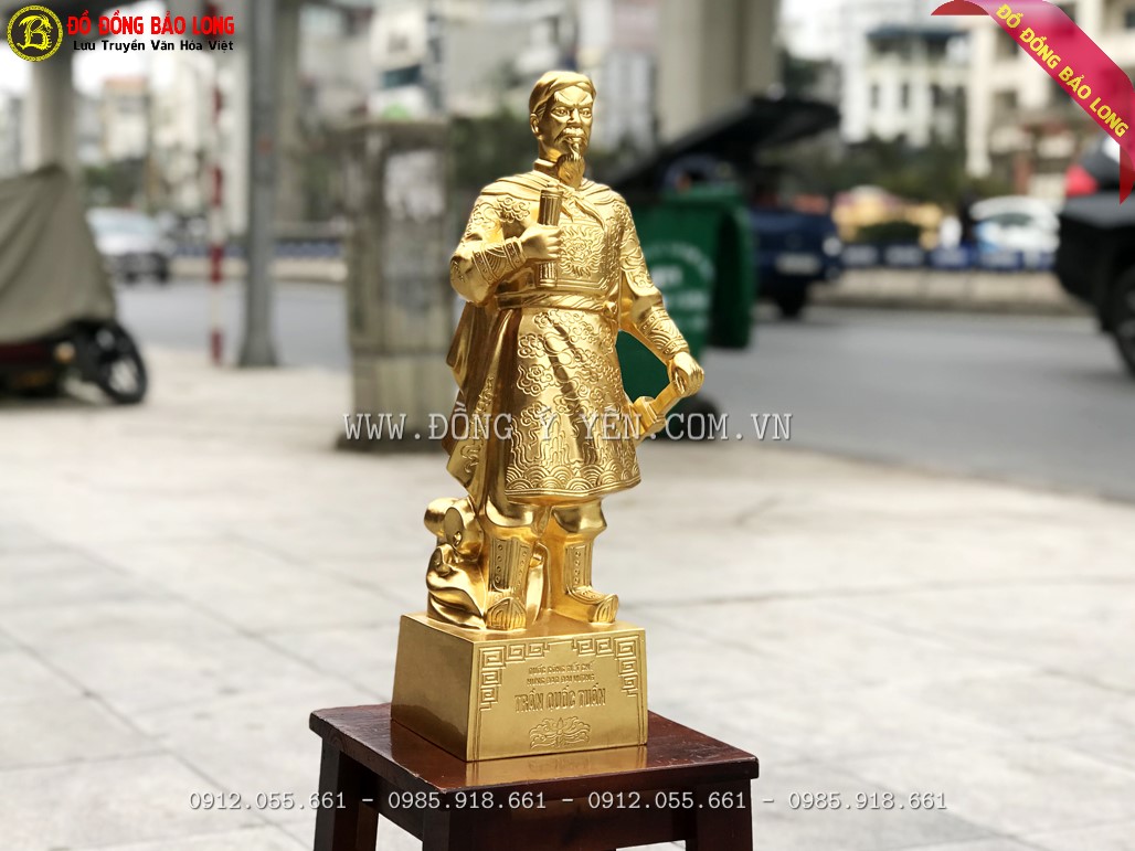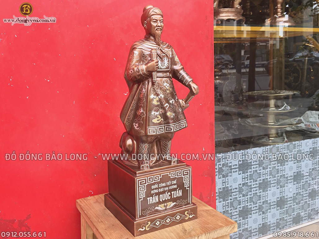Tượng Trần Quốc Tuấn cao 42cm và 48cm bằng đồng đỏ dát vàng 9999 tuyệt đẹp